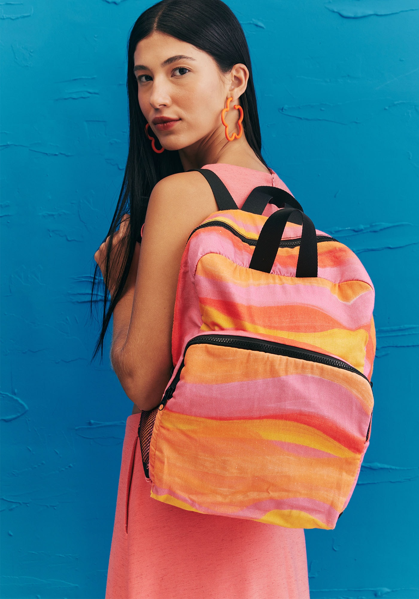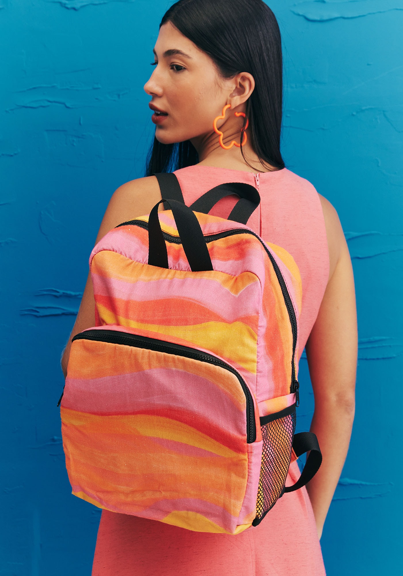 A mochila estampada é umacessório perfeito para te acompanhar no dia a dia. O modelo conta com umcompartimento maior bastante espaçoso, que cabe objetos maiores ou em maiorquantidade e um bolso frontal. Os laterais são em tela e dão um toque modernopara o acessório.