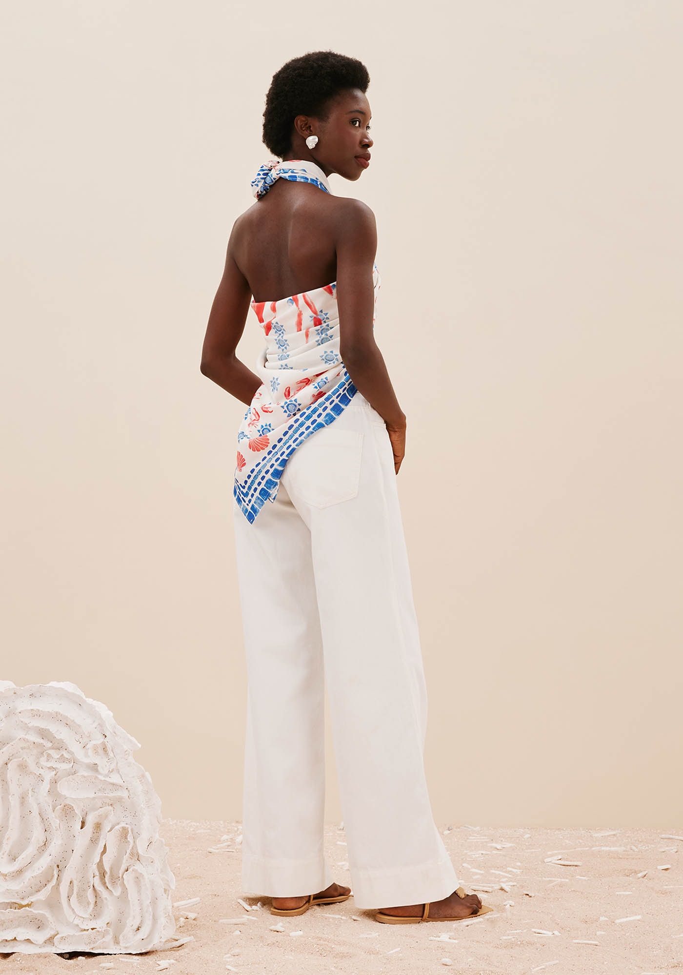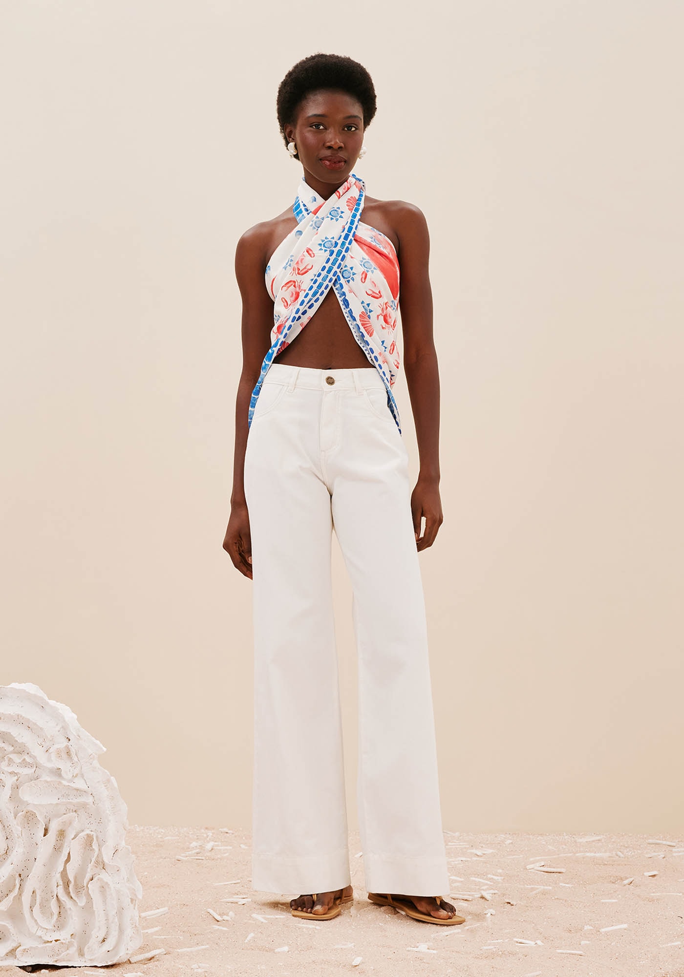 Confeccionado em tecido 97%viscose 3% linho, o panô é uma peça super versátil e bonita. Os diferentestipos de amarrações possibilitam o seu uso como top, blusa, saia ou sobreposição.A estampa Icapui é super delicada e possui elementos que remetem ao verão eseus dias de sol.