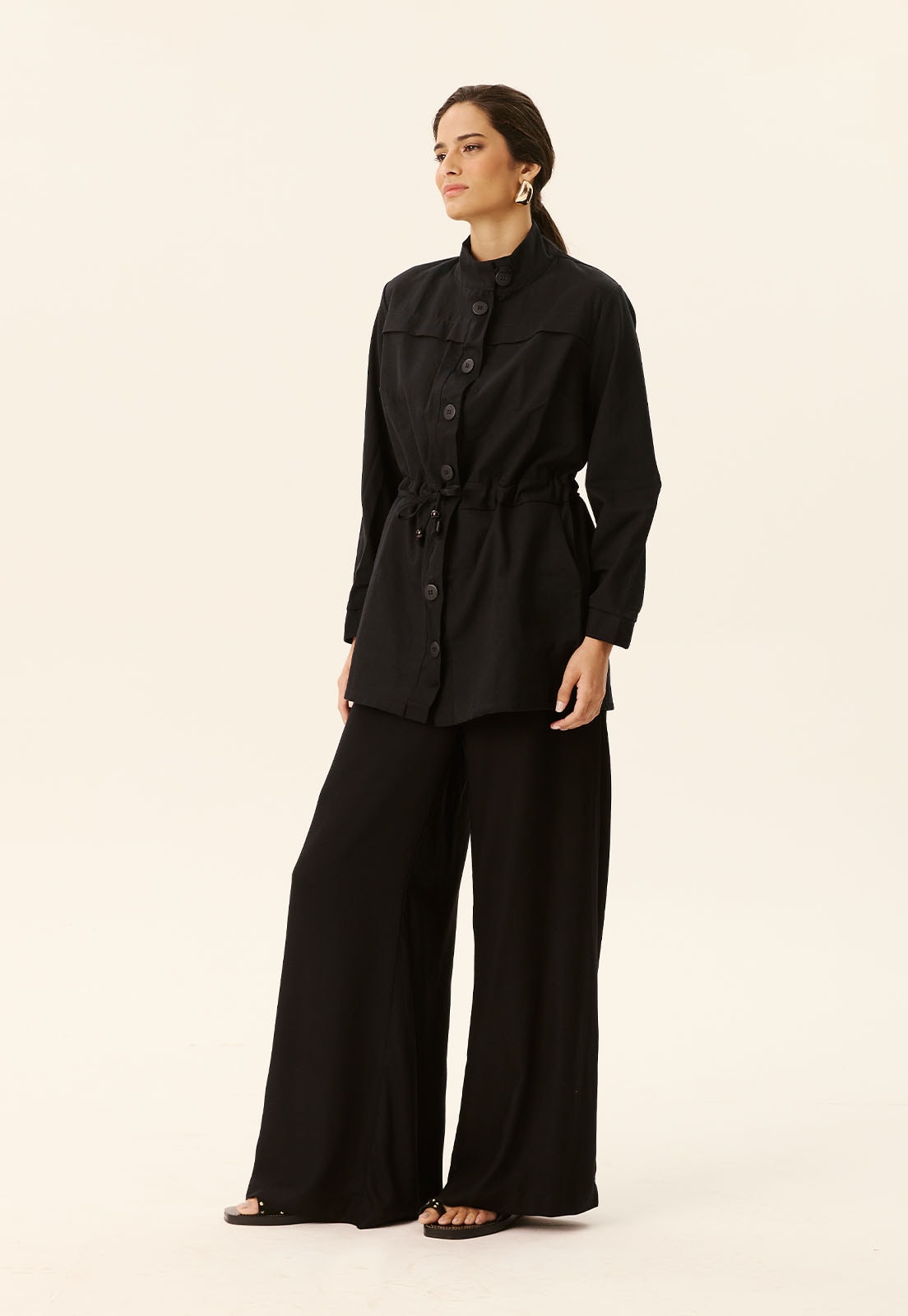 A Parka Botões da CaCay é a peça-chave para quem busca elegância funcional e conforto no dia a dia. Confeccionada em 100% algodão, oferece toque suave e respirabilidade, garantindo caimento estruturado sem perder leveza. O design apresenta fechamento frontal com botões marcantes e ajuste na cintura, criando uma silhueta versátil que valoriza diferentes corpos. Ideal para compor looks casuais ou sofisticados, combina perfeitamente com calças retas, jeans ou até sobre vestidos, além de acessórios como cintos e bolsas minimalistas.
