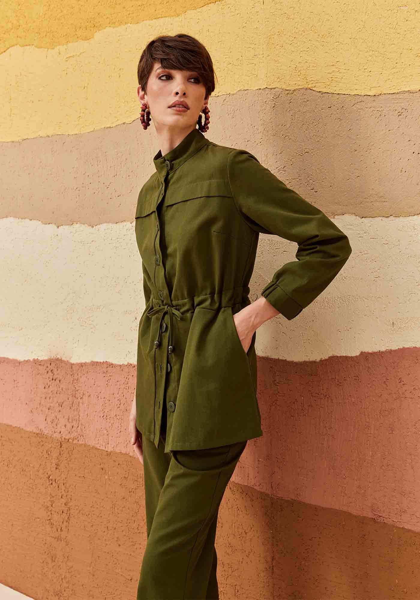 A Parka Botões da CaCay é a peça-chave para quem busca elegância funcional e conforto no dia a dia. Confeccionada em 100% algodão, oferece toque suave e respirabilidade, garantindo caimento estruturado sem perder leveza. O design apresenta fechamento frontal com botões marcantes e ajuste na cintura, criando uma silhueta versátil que valoriza diferentes corpos. Ideal para compor looks casuais ou sofisticados, combina perfeitamente com calças retas, jeans ou até sobre vestidos, além de acessórios como cintos e bolsas minimalistas.