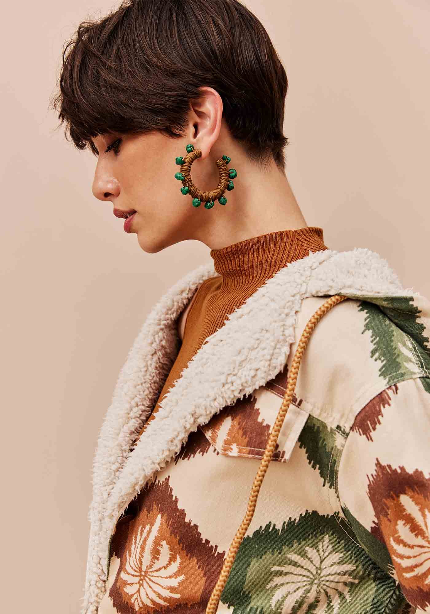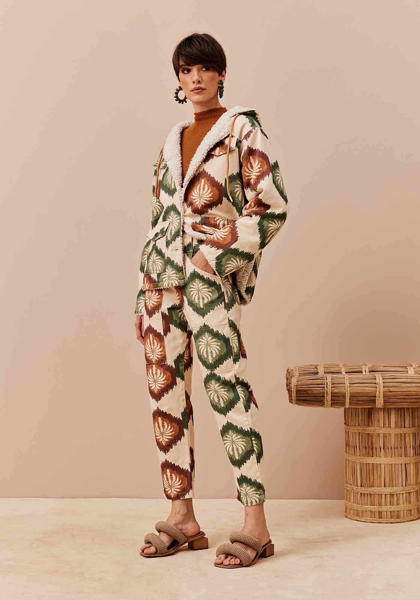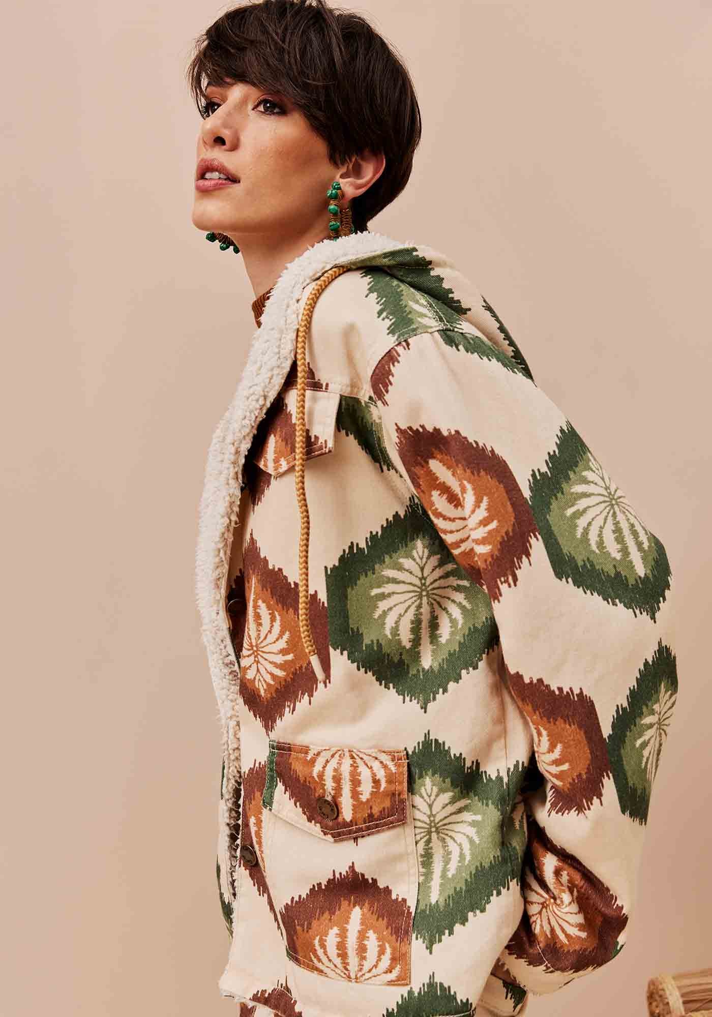 A parka estampada Los Andes é confeccionada em tecido 100% algodão. Modelodupla face,pode ser usado de duas formas: com o lado estampado para fora ou da sherpa. Possui fechamento em botão, capuz com ajuste em corda e bolsos grandes na parte da frente.