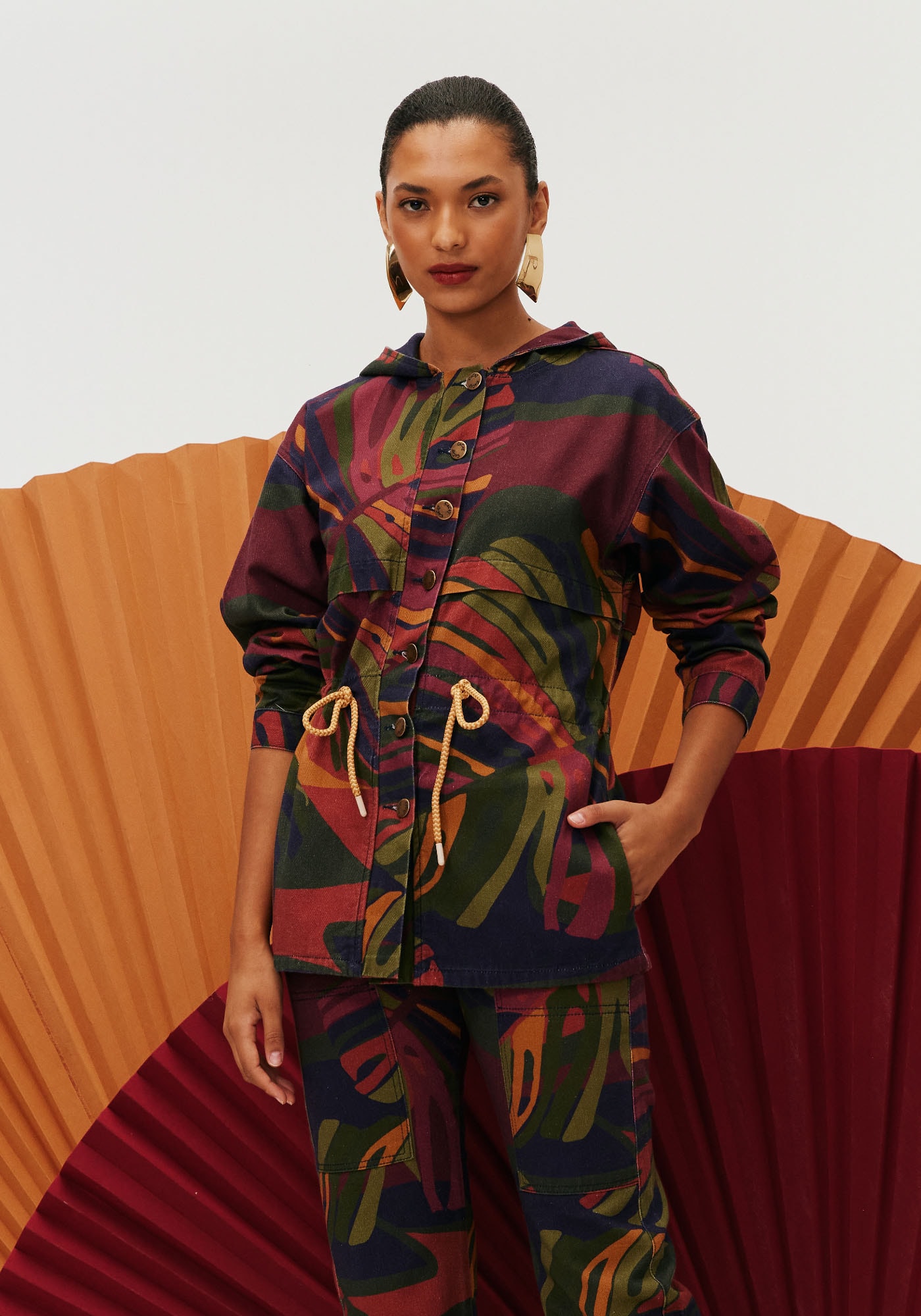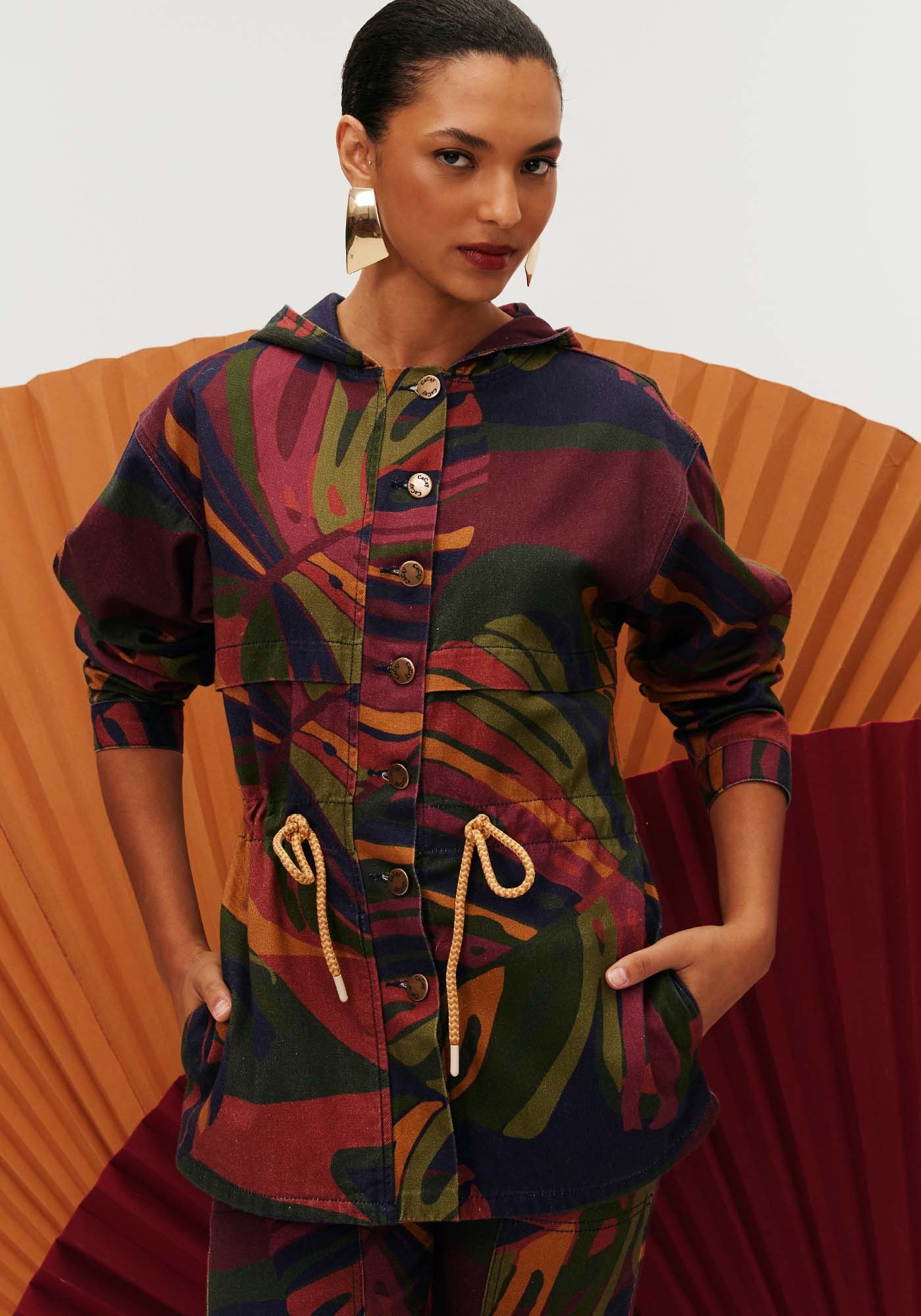 A parka é uma peça super estilosa. Confeccionada em sarja 100% algodão, o modelo possui abotoamento frontal e amarração em túnel. Além disso, a peça possui capuz, agregando charme e estilo à peça.