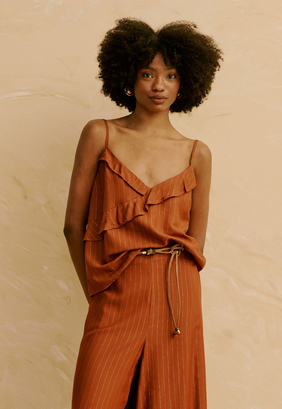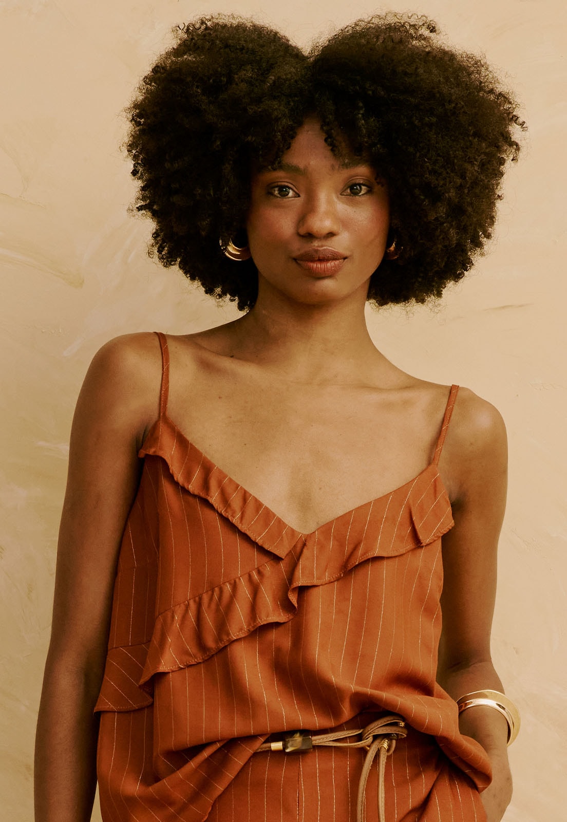A Regata Lisa com Babados no Decote da CaCay apresenta modelagem delicada e com caimento suave no busto, valorizando a silhueta sem marcar. O detalhe dos babados traz movimento e leveza, enquanto as alças ajustáveis permitem adequar o comprimento conforme a necessidade. A forma é grande, então se estiver em dúvida entre dois tamanhos, recomendamos escolher o menor e consultar a tabela de medidas para precisão. Na foto, a modelo tem 1,75m de altura, veste manequim 36 e está usando o tamanho P.