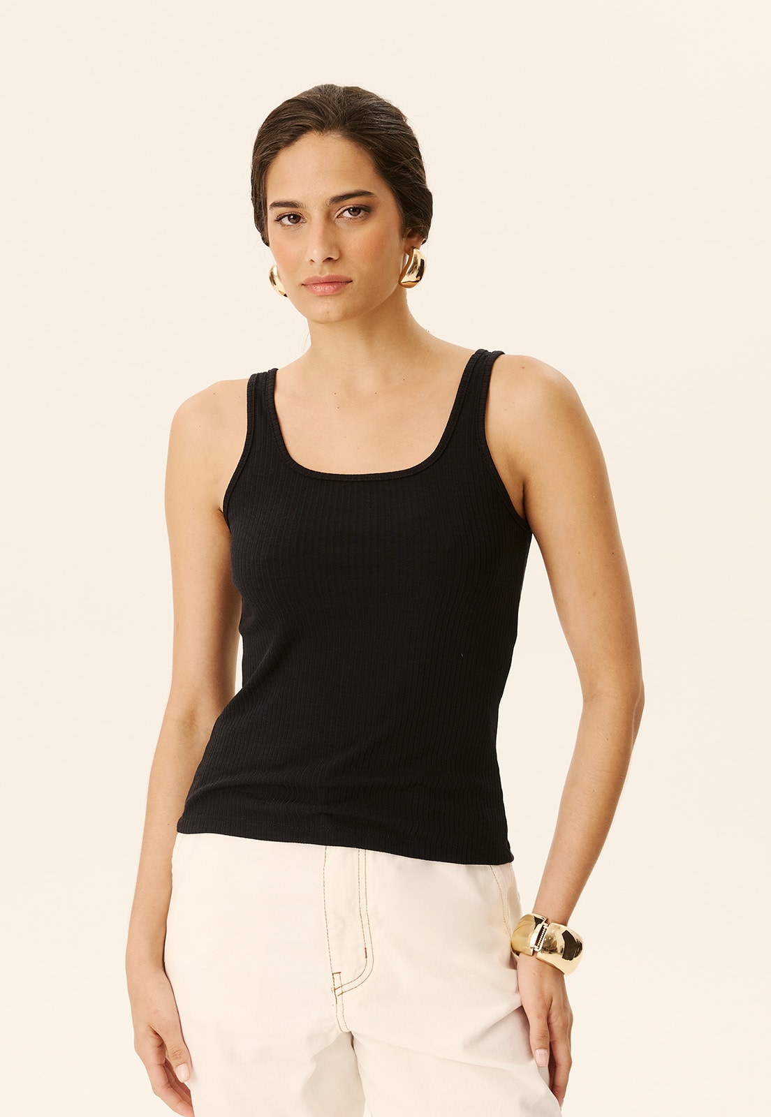 Combine com calças amplas, saias fluidas ou sobreposições leves para criar produções modernas e equilibradas. Ideal para quem prioriza praticidade e elegância, essa regata é indispensável no guarda-roupa.