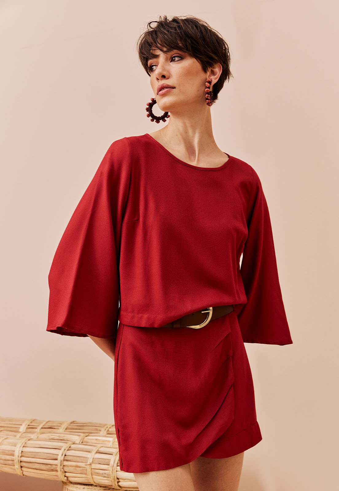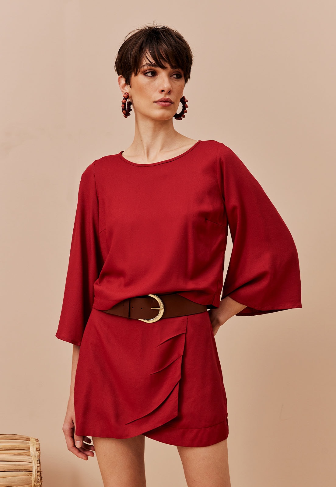 A Saia Curta com Pregas Transpasse da CaCay é a escolha ideal para quem busca sofisticação com leveza. Confeccionada em 100% viscose, essa peça une fluidez e conforto em um design que valoriza o movimento. O transpasse frontal cria uma sobreposição elegante, enquanto as pregas sutis adicionam textura e charme ao visual. Seu comprimento acima dos joelhos garante versatilidade para diferentes ocasiões, do dia a dia ao encontro casual.