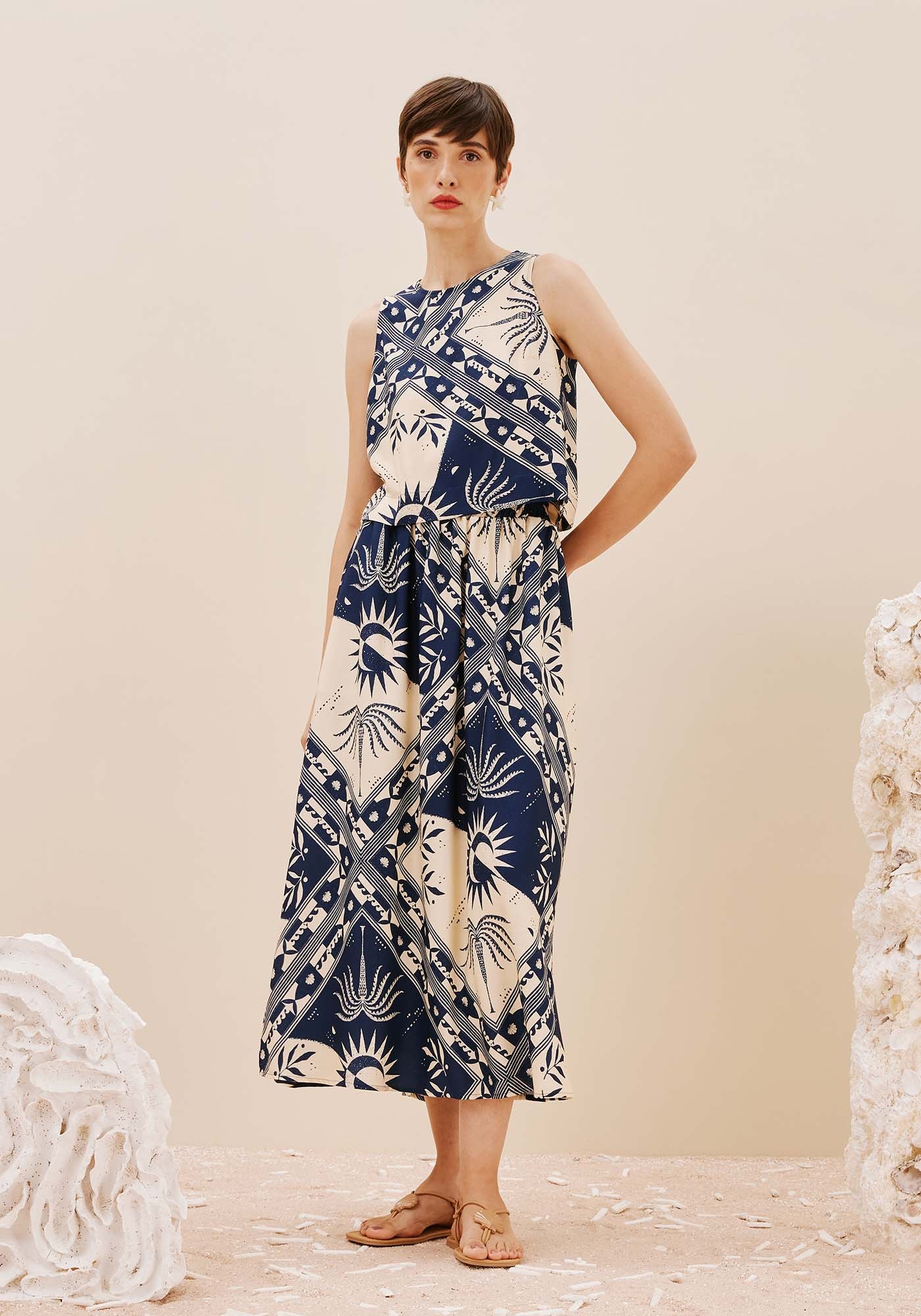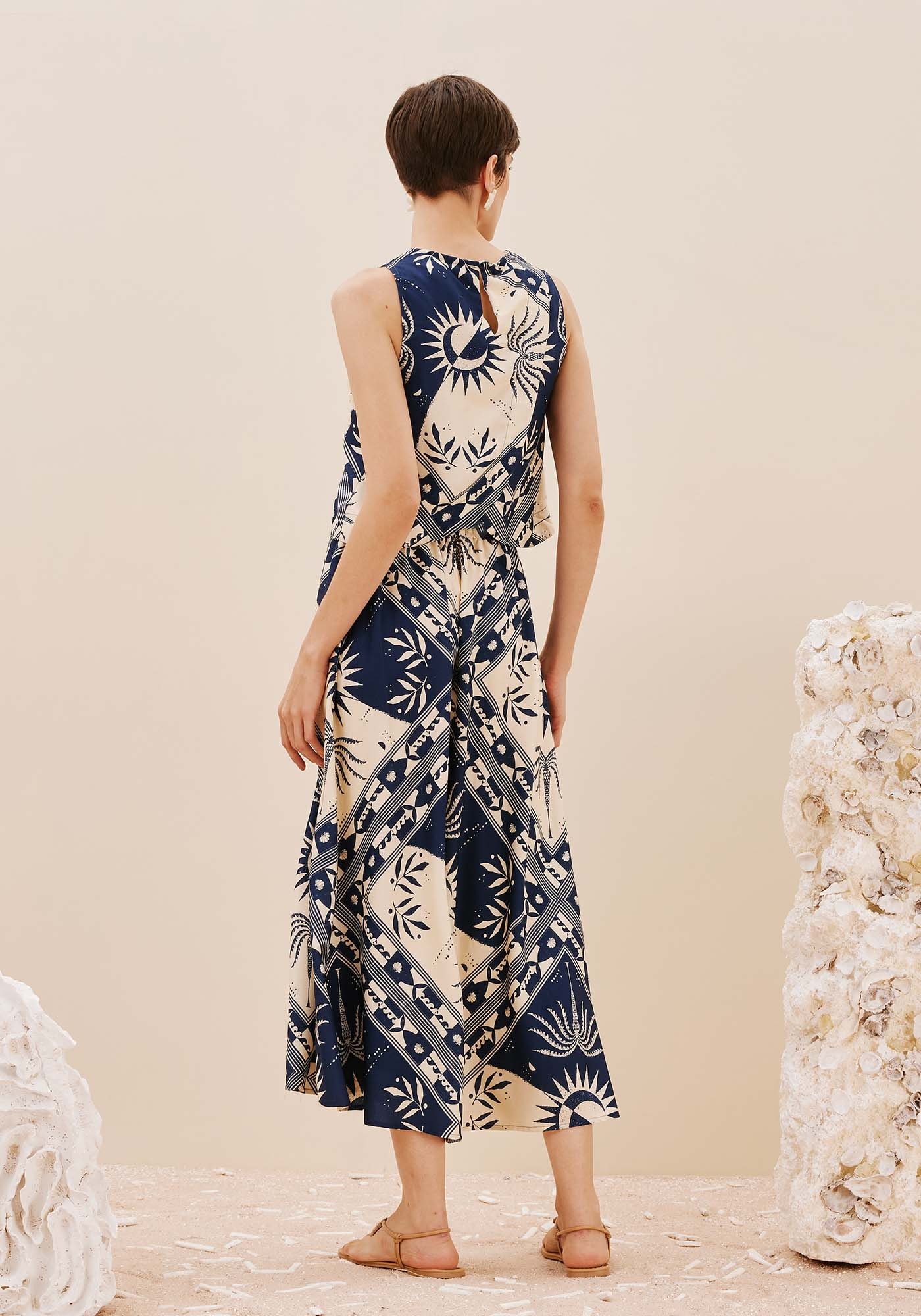 Confeccionadaem tecido 100% viscose, a saia com modelagem evasê é pura sofisticação. Omodelo possui elástico na cintura, favorecendo a vestibilidade e usabilidade, ecomprimento midi super elegante. Pode ser usada em diferentes ocasiões, ora compondoum look mais chic, ora mais despojado.