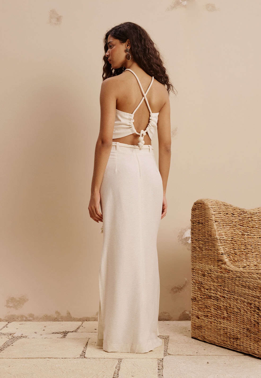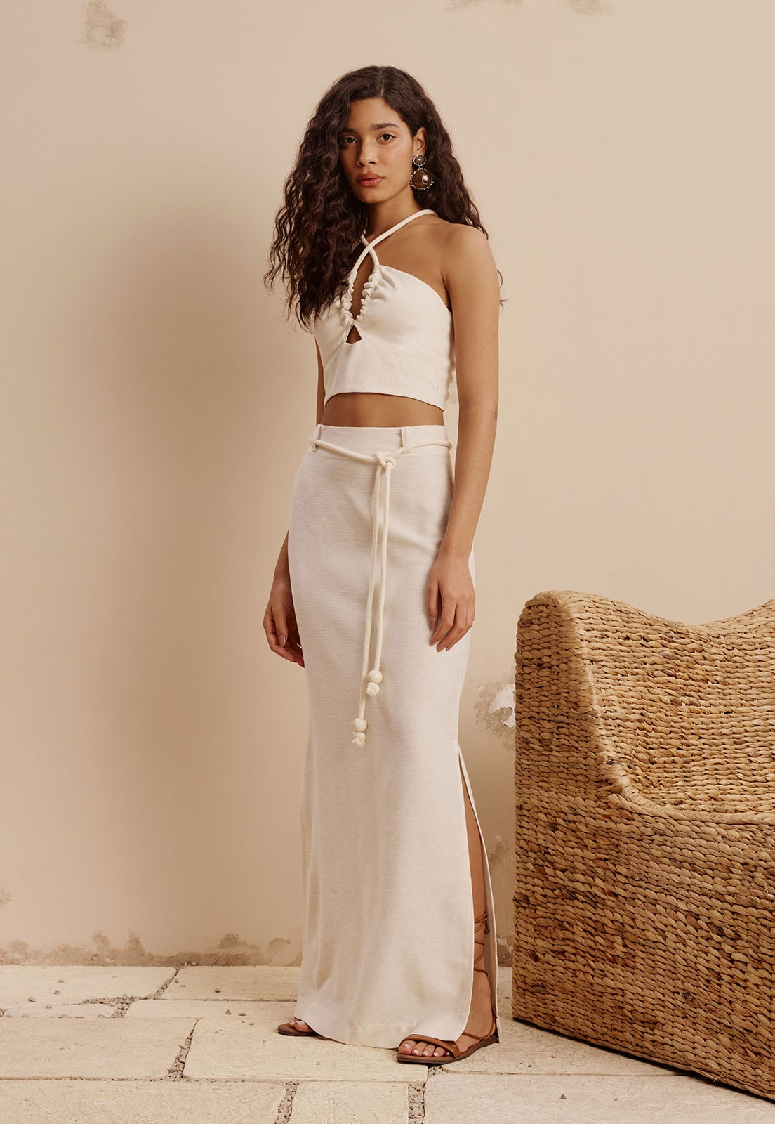 Descubra o equilíbrio entre conforto e estilo com a CaCay experimente a Saia Longa Cinto Corda e transforme seu look com autenticidade.