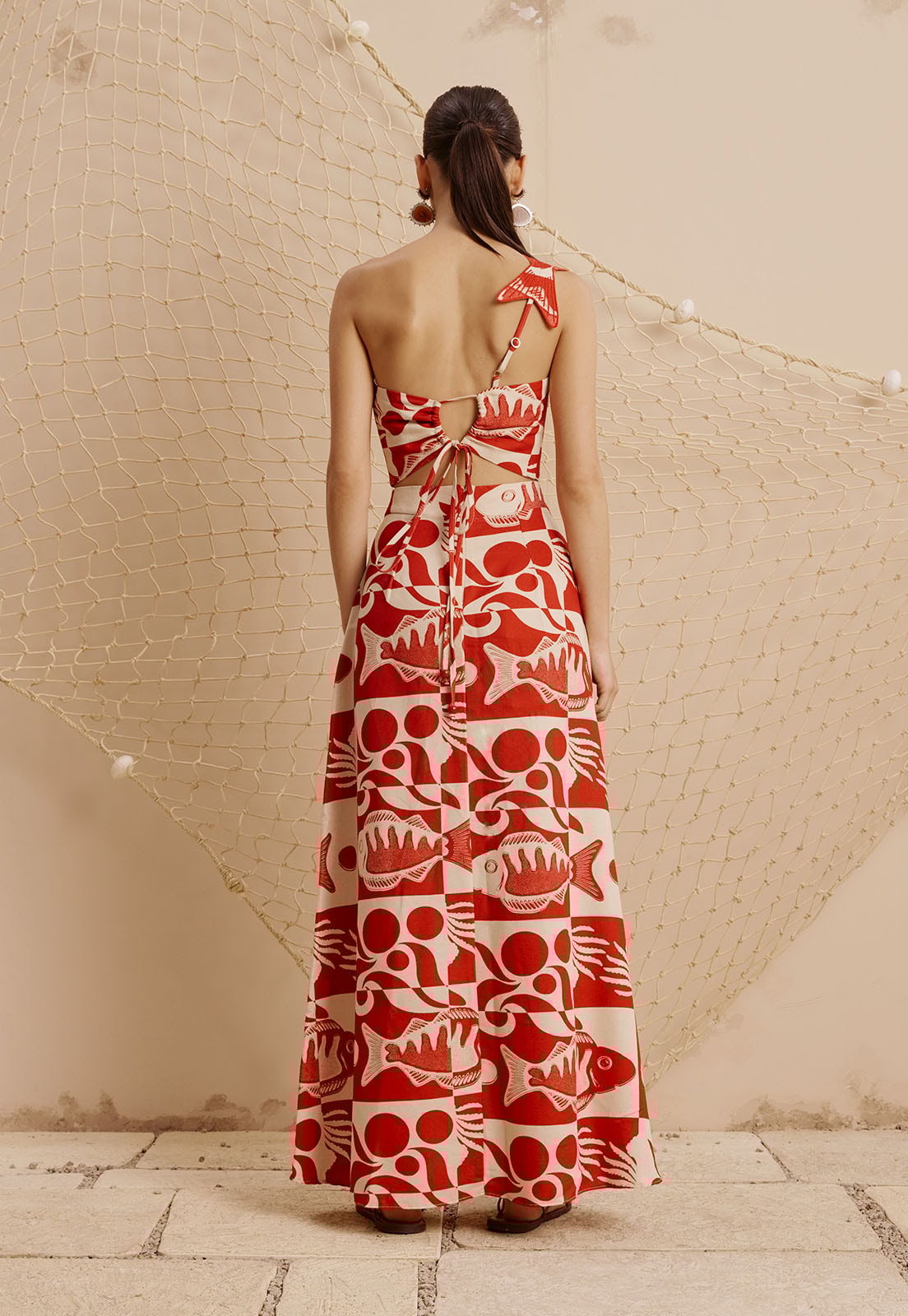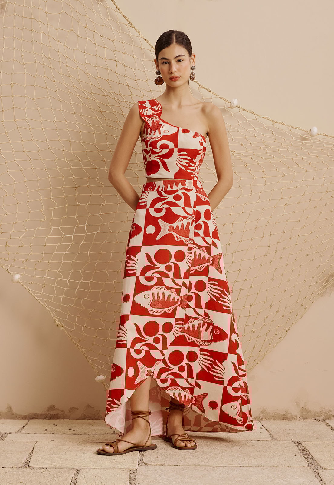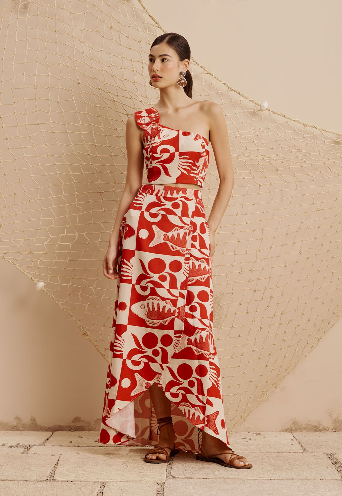 A Saia Longa Mullet Estampada Tucunaré da CaCay é uma peça que une fluidez e personalidade em um design assimétrico marcante. Com corte mullet mais curto na frente e alongado atrás ela valoriza o movimento e o caimento elegante, ideal para quem busca sofisticação com leveza. A estampa exclusiva, inspirada em elementos gráficos e naturais, como peixes e formas geométricas, adiciona um toque artístico à composição. Confeccionada com uma mistura nobre de fibras (50% algodão, 29% viscose, 15% modal e 6% linho), oferece conforto térmico e toque suave, perfeita para uso prolongado em diversas ocasiões.