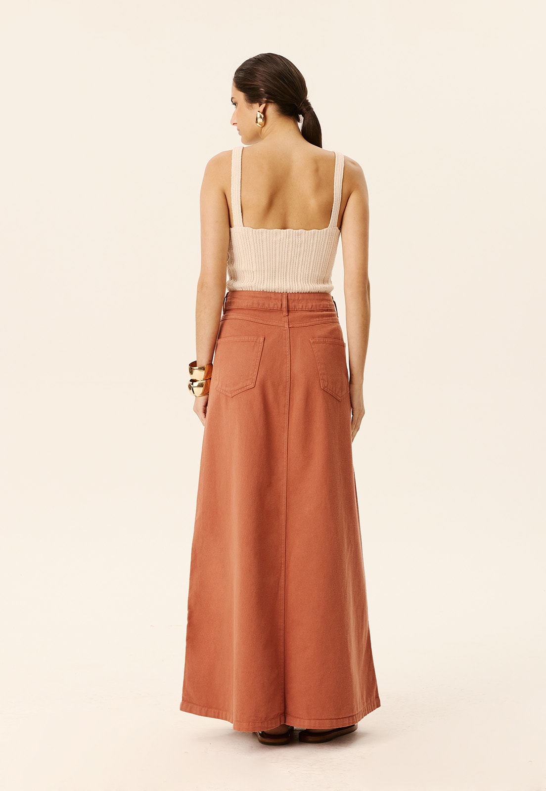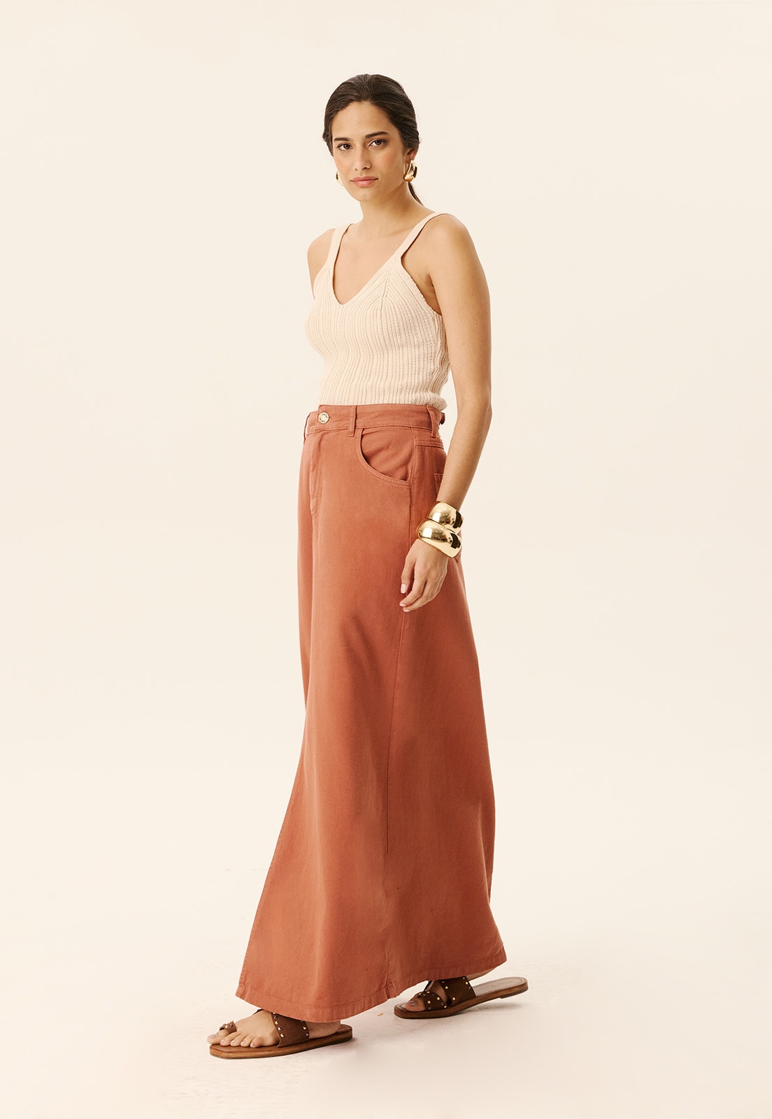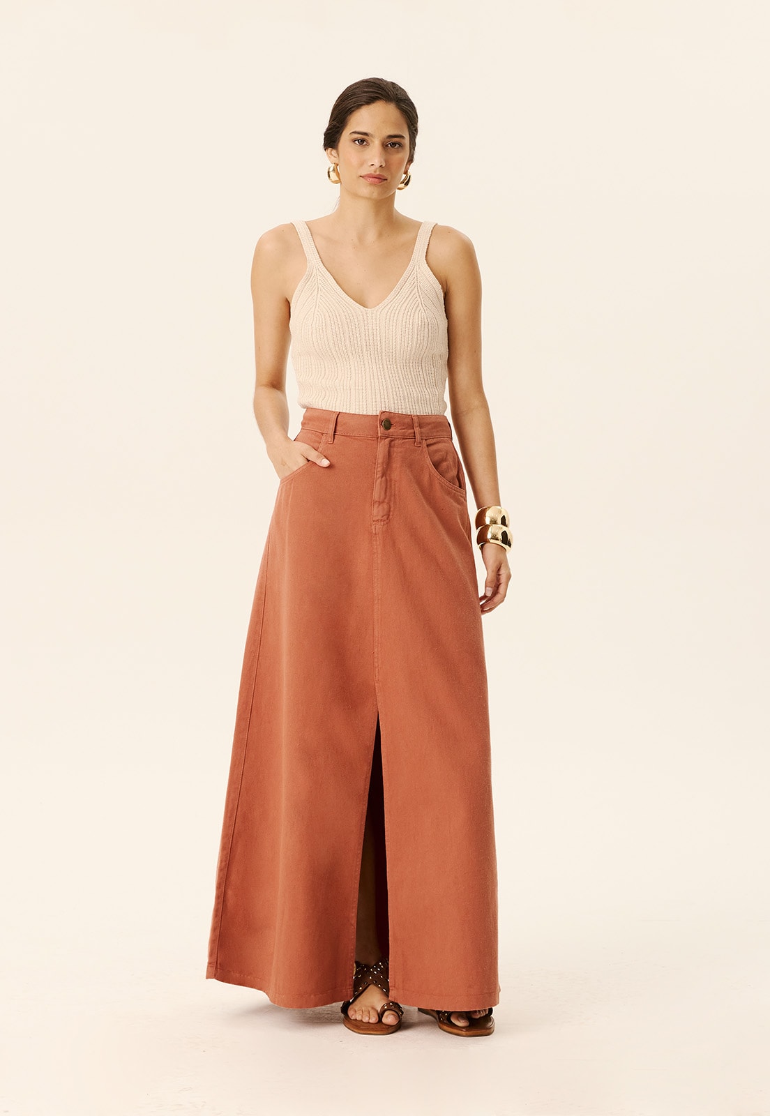 A Saia Longa Sarja CaCay é a escolha perfeita para quem busca elegância com conforto. Confeccionada em sarja 100% algodão, oferece toque macio e caimento estruturado que valoriza a silhueta sem perder a liberdade de movimento. O design clean com abertura frontal adiciona charme e praticidade, tornando a peça ideal para diferentes ocasiões do dia a dia ao look sofisticado para eventos casuais.