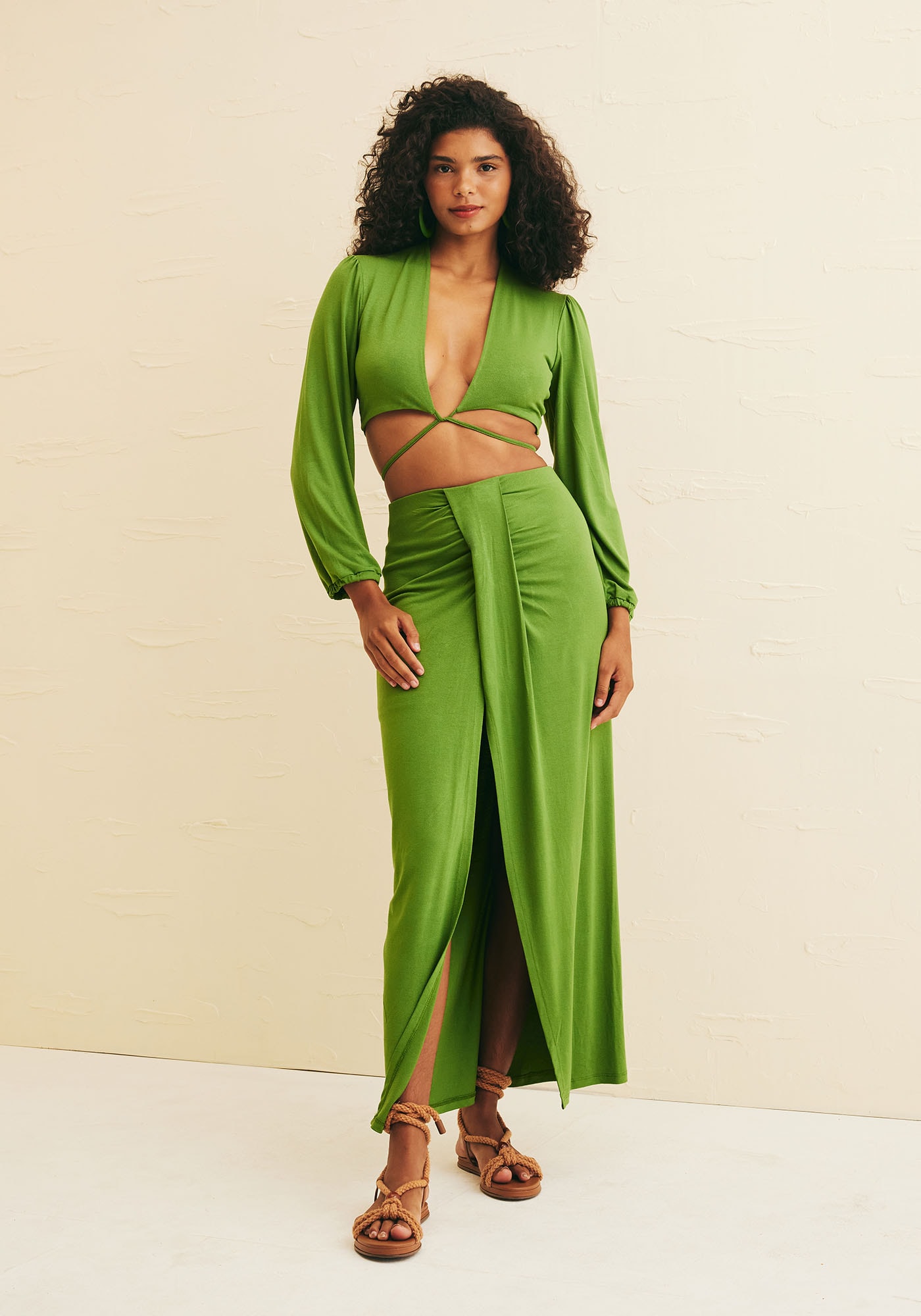 Se você busca um visual ousado ecom personalidade, esta Saia Midi é a escolha ideal. Confeccionada em malha decomposição 96% Viscose 4% Elastano, ela apresenta uma modelagem ajustada queevidencia a silhueta. A peça se destaca por seu detalhe em drapeado frontal comfenda que adiciona um toque de estilo e sensualidade.