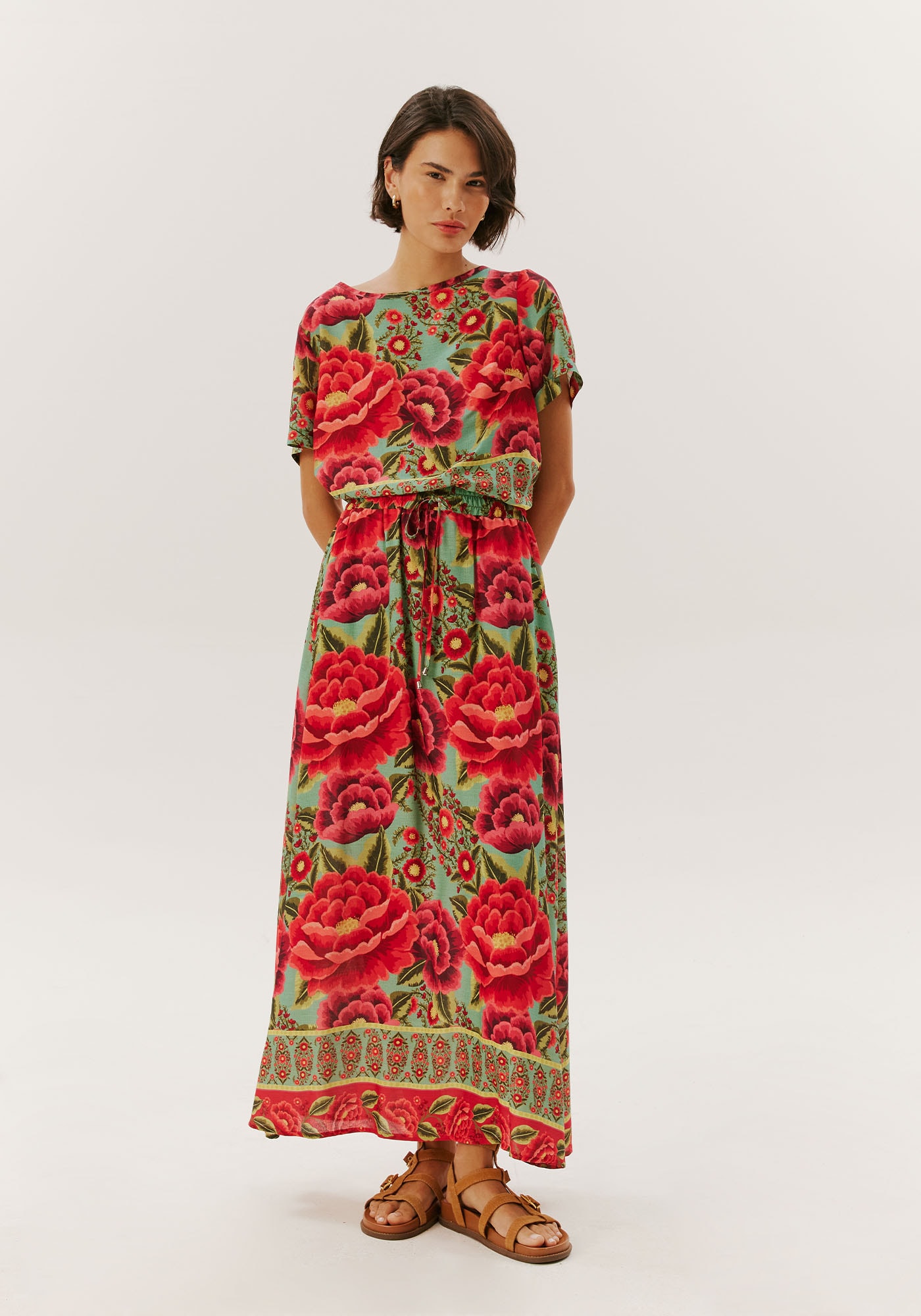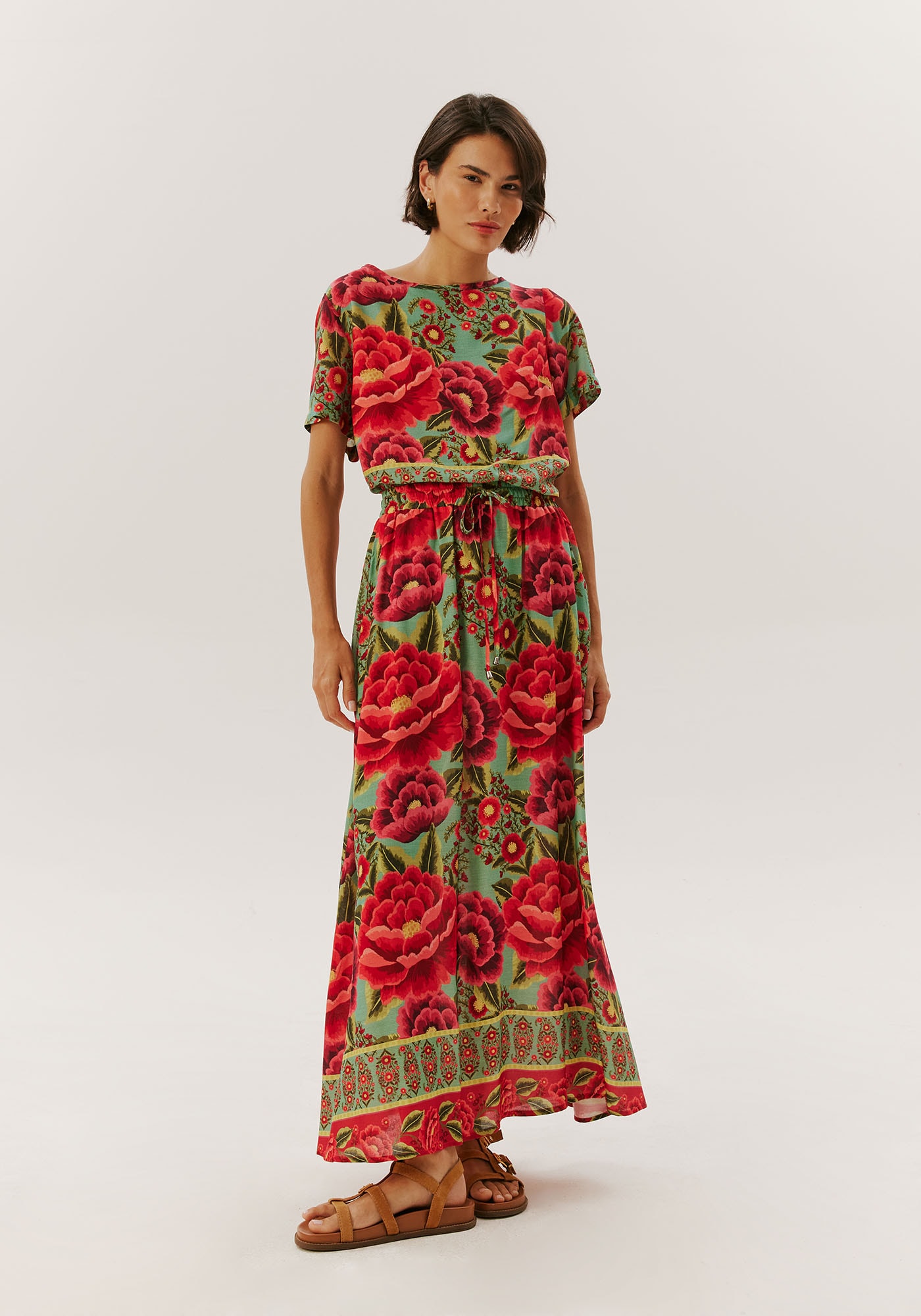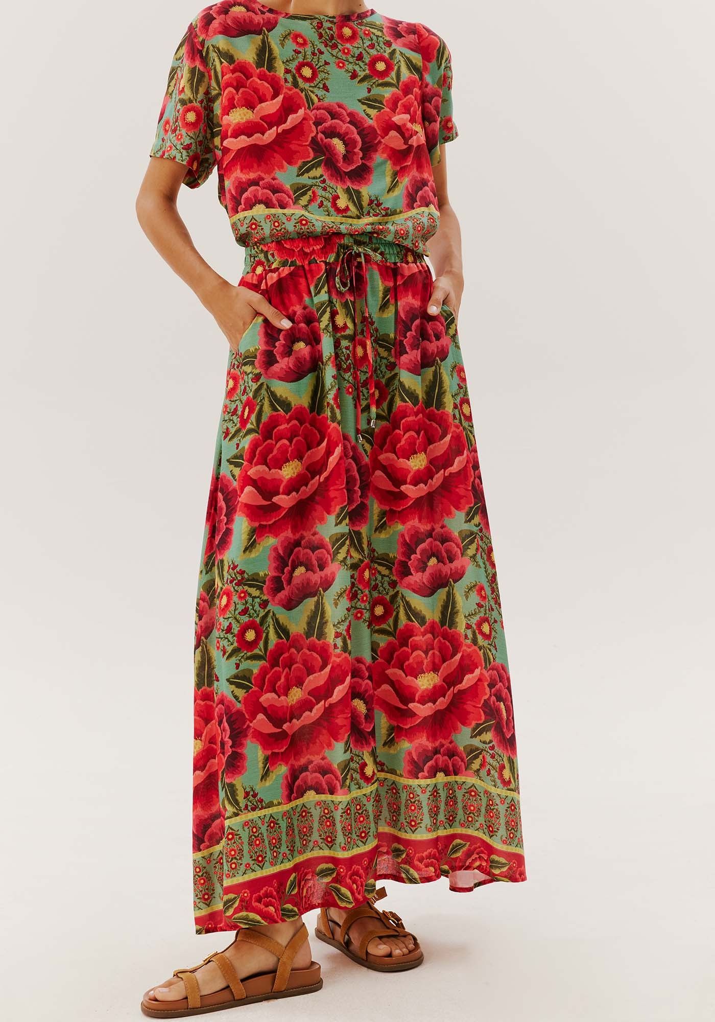 Elegante e confortável, esta saiamidi em viscose conta com comprimento amplo, práticos bolsos laterais e túnelna cintura para um ajuste perfeito ao corpo. Esta peça une estilo epraticidade, sendo uma escolha versátil para diversas ocasiões.