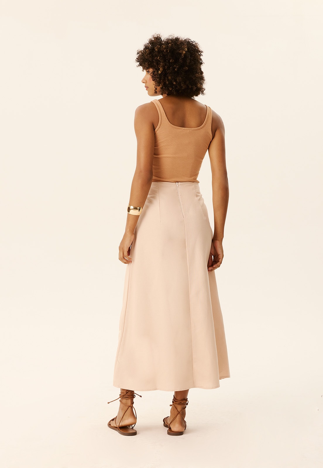 Versátil e cheia de personalidade, essa saia combina facilmente com blusas de alças, camisas estruturadas ou até croppeds ajustados, além de acessórios como sandálias de tiras, bolsas de palha ou joias minimalistas. A modelo veste tamanho P e tem 1,77m de altura, evidenciando o caimento impecável da peça.