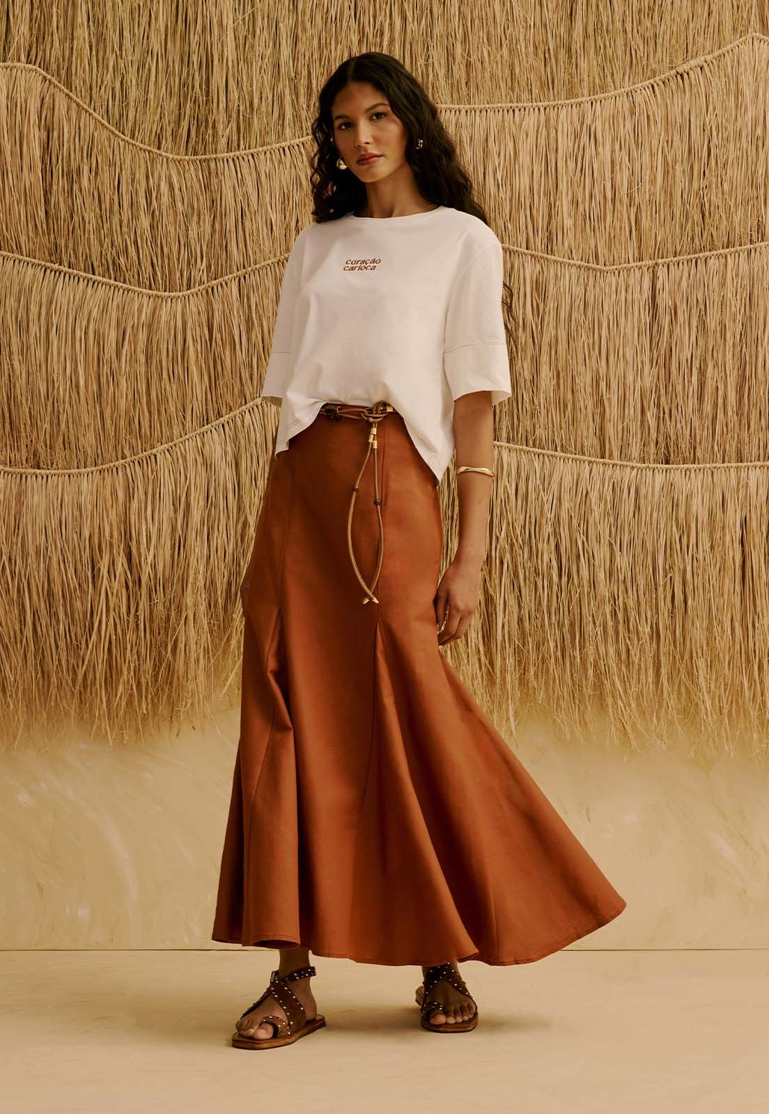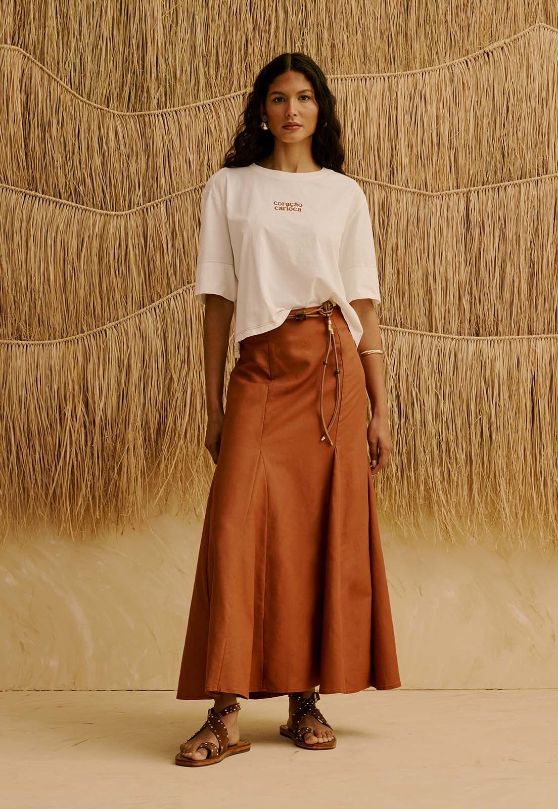 Confeccionada em tecido plano de algodão com viscose, a peça tem toque macio, zero transparência e não possui elasticidade, ideal para uso prolongado com conforto. É perfeita para compor looks casuais, de trabalho ou eventos diurnos com estilo natural e atemporal. Combine com blusas leves, sandálias de tiras ou acessórios em tons terrosos para um visual sofisticado e descomplicado.