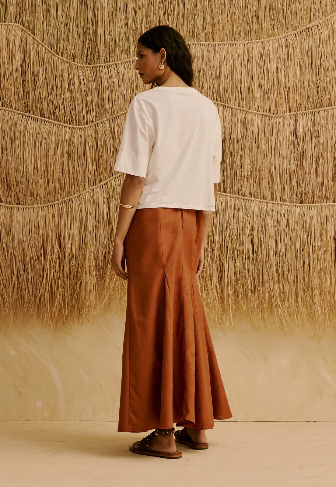 A Saia Midi Lisa com Nesgas da CaCay traz uma modelagem fluida e elegante, com caimento levemente que valoriza a silhueta. O cós alto com zíper define a cintura com conforto, enquanto as nesgas amplas criam movimento e leveza ao caminhar. A forma é grande. Se estiver em dúvida entre dois tamanhos, recomendamos optar pelo menor. Consulte a tabela de medidas para mais precisão. A modelo da foto tem 1,75m, veste manequim 36 e está usando o tamanho P.