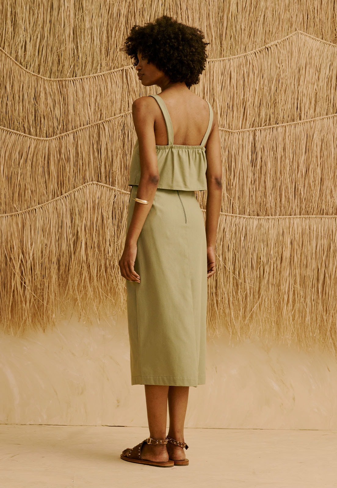 Confeccionada em 100% algodão, o tecido é encorpado, garantindo estrutura e conforto prolongado e possui fechamento em zíper discreto. Para um visual completo, combine com blusas fluídas, acessórios dourados ou sandálias de tiras.