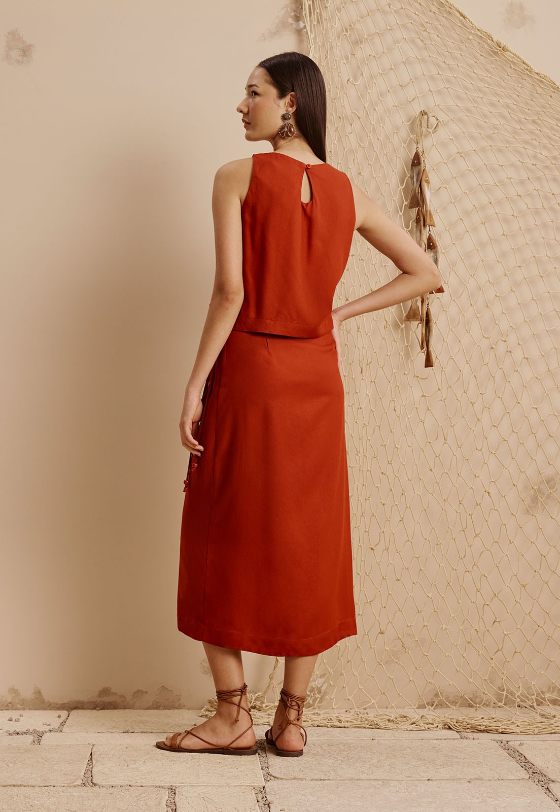 Combine com tops minimalistas, sandálias rasteiras ou acessórios marcantes para criar produções que vão do almoço ao evento especial. Atemporal e cheia de personalidade, esta saia é um investimento certeiro no seu guarda-roupa.