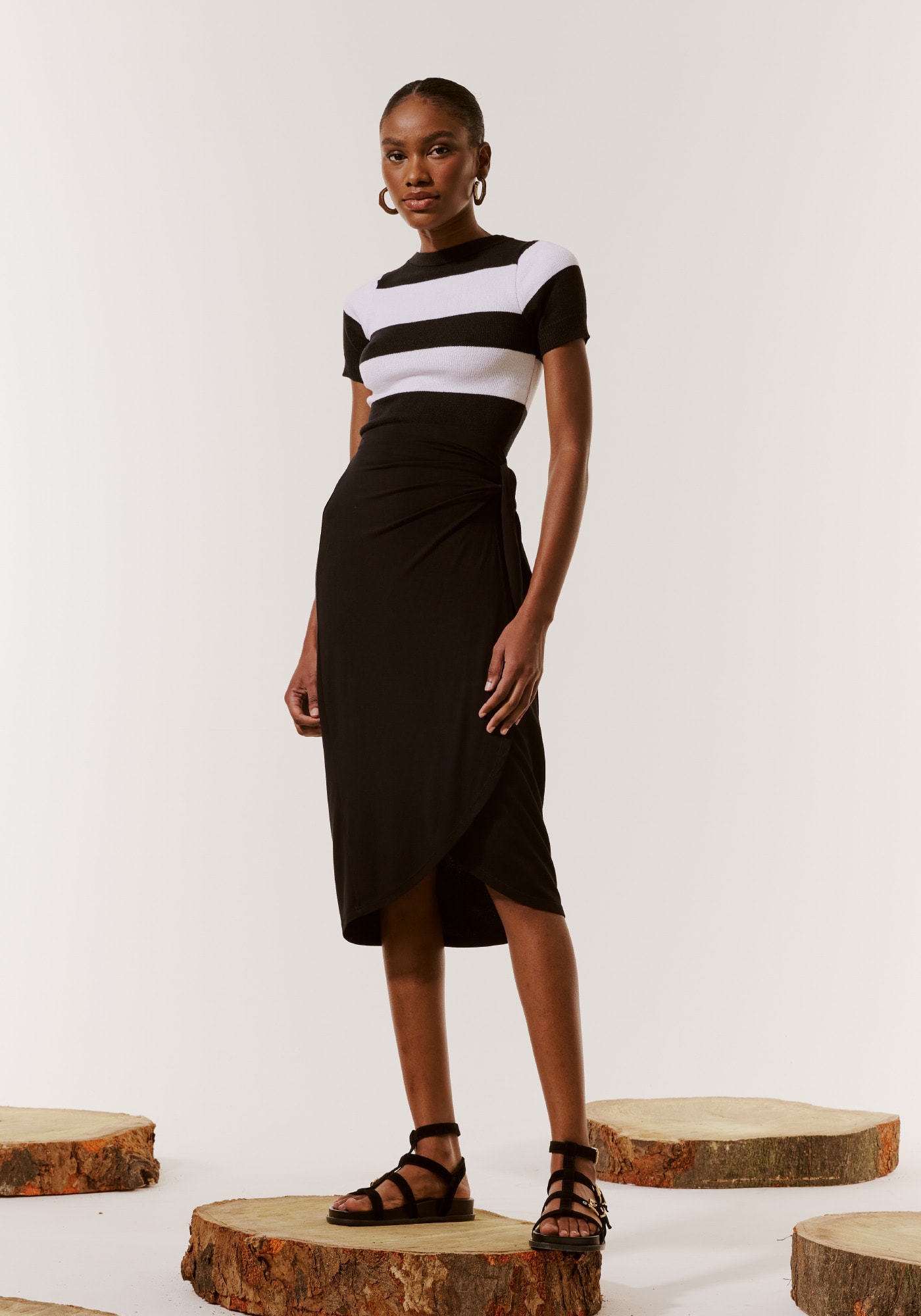 Confeccionado em malha, 96% viscose 4%elastano, a modelagem pareô com amarração lateral.