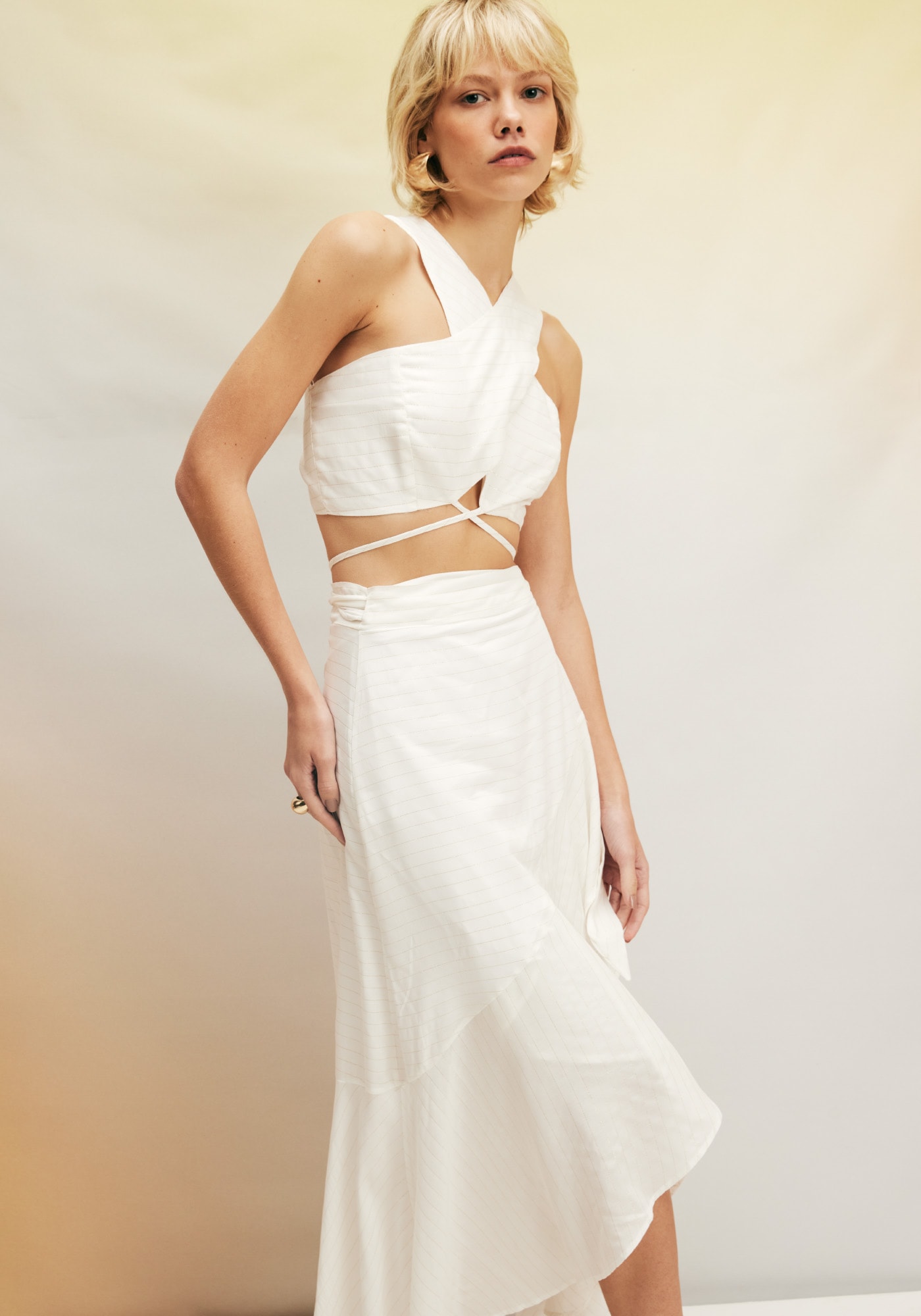 Nossa saia pareô é a peça ideal para quembusca estilo e versatilidade. É perfeita para diversas ocasiões, e suaamarração na cintura permite um ajuste perfeito ao corpo valorizando sua silhueta.Seu caimento fluido traz para o look um toque romântico e feminino. Composição:100% poliéster