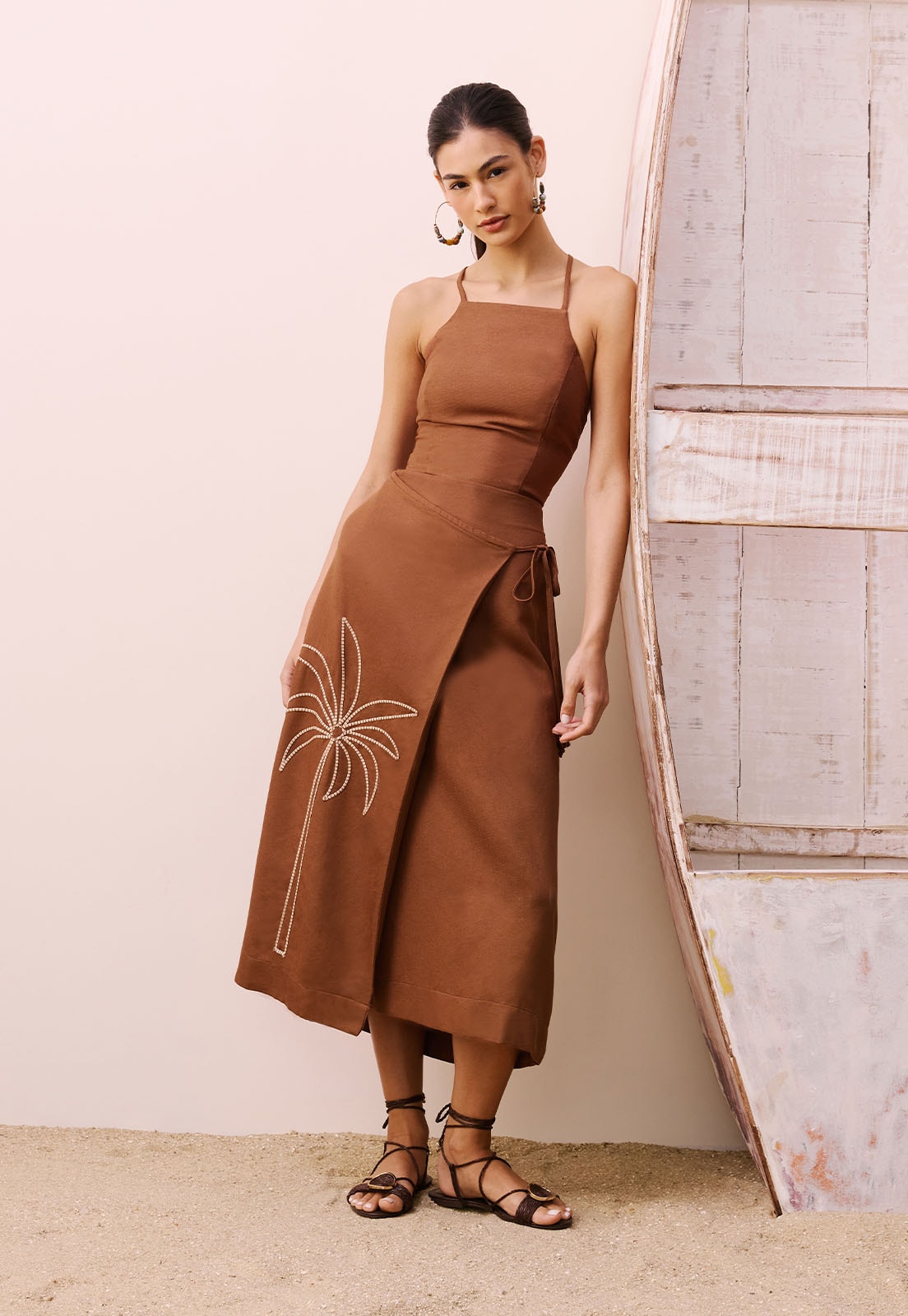 Descubra o toque único da CaCay e transforme seu look com a autenticidade da Saia Transpassada Coqueiro experimente e sinta a diferença!