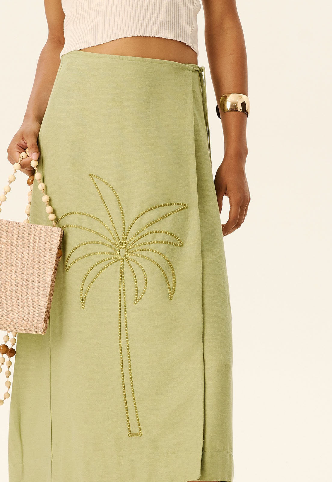 Descubra o toque único da CaCay e transforme seu look com a autenticidade da Saia Transpassada Coqueiro experimente e sinta a diferença!