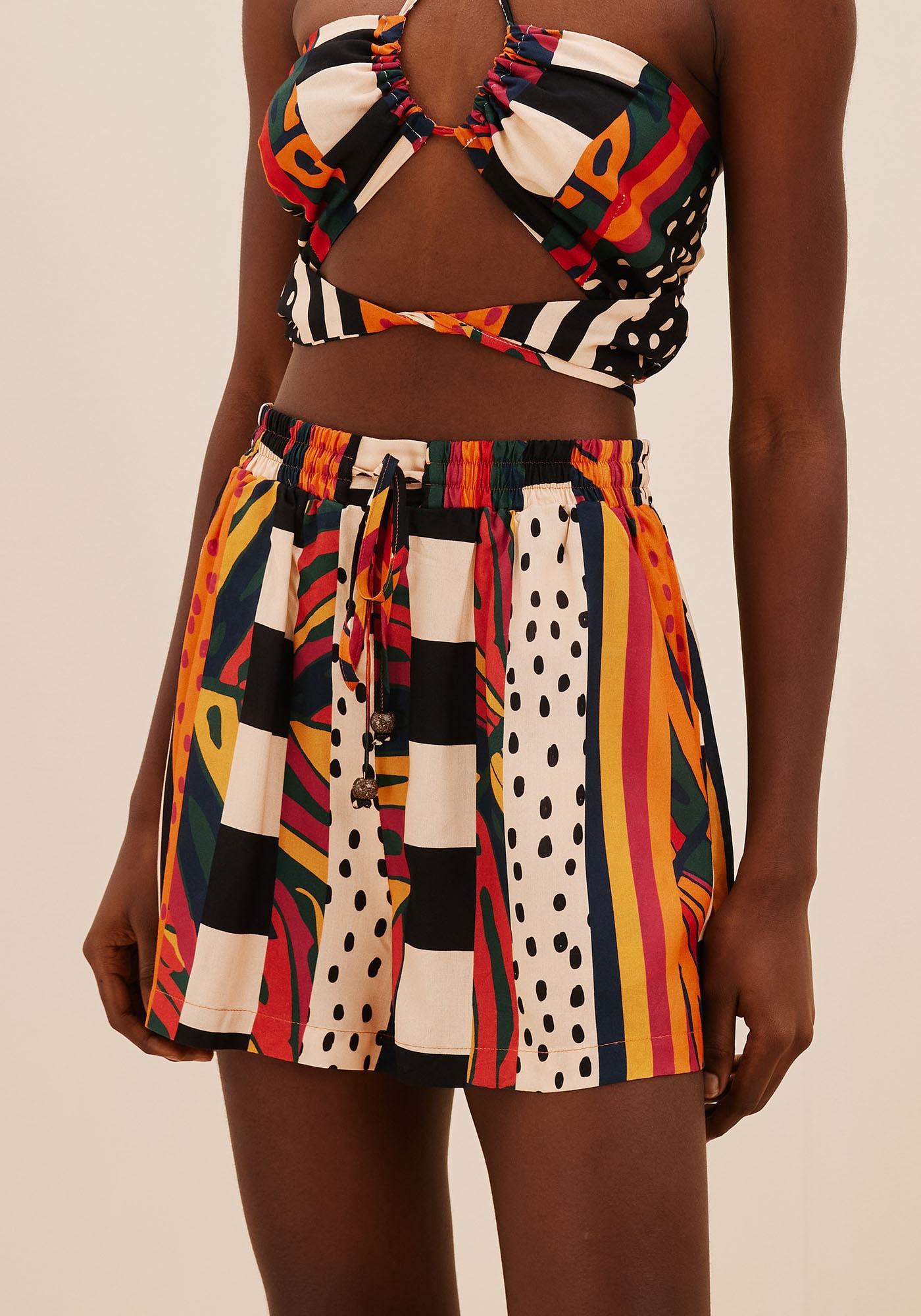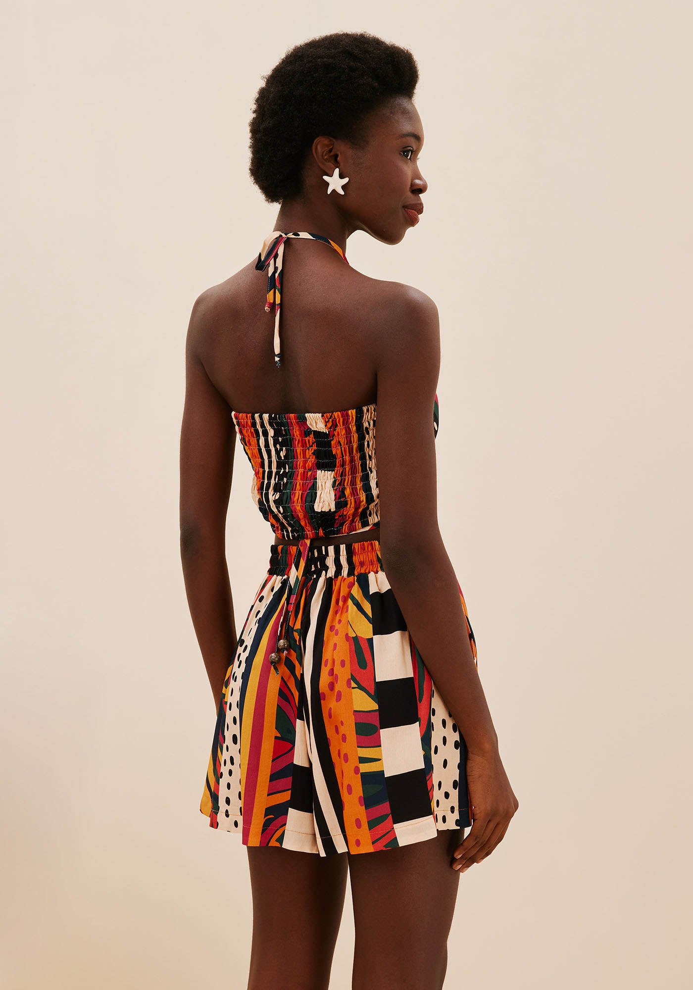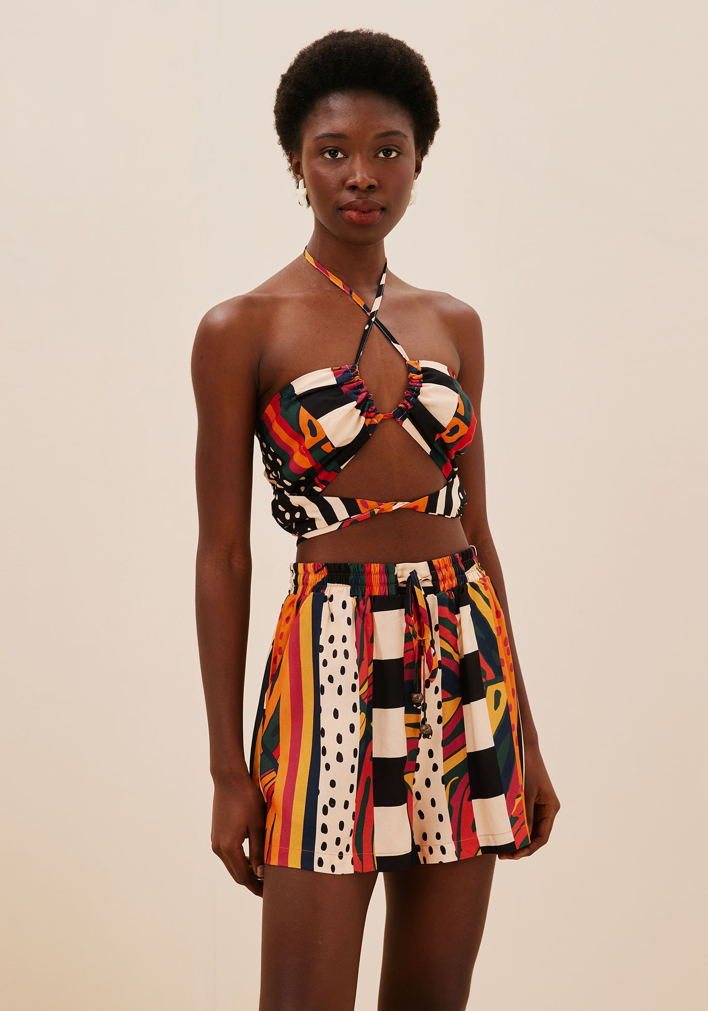 O Short Estampado Terra tem umestilo casual e descontraído, perfeito para dias de verão. Possui cós em lastexcom amarração frontal que oferece um ajuste confortável e personalizado, alémdo acabamento em ponteiras que traz sofisticação. A modelagem ampla proporcionaliberdade de movimento enquanto os bolsos enquanto os bolsos conferemfuncionalidade ao look. Feito em 100% viscose, ele se destaca pela estampaencantadora Terra e é ideal para compor looks frescos e modernos.