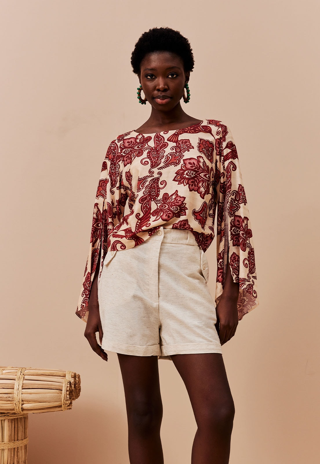 O short curto liso é confeccionado em tecido 42% algodão 38% viscose 15% modal e 6% linho. O modelo social e elegante possui cintura e barra dobrada. Além disso, conta com bolsos laterais com aba.
