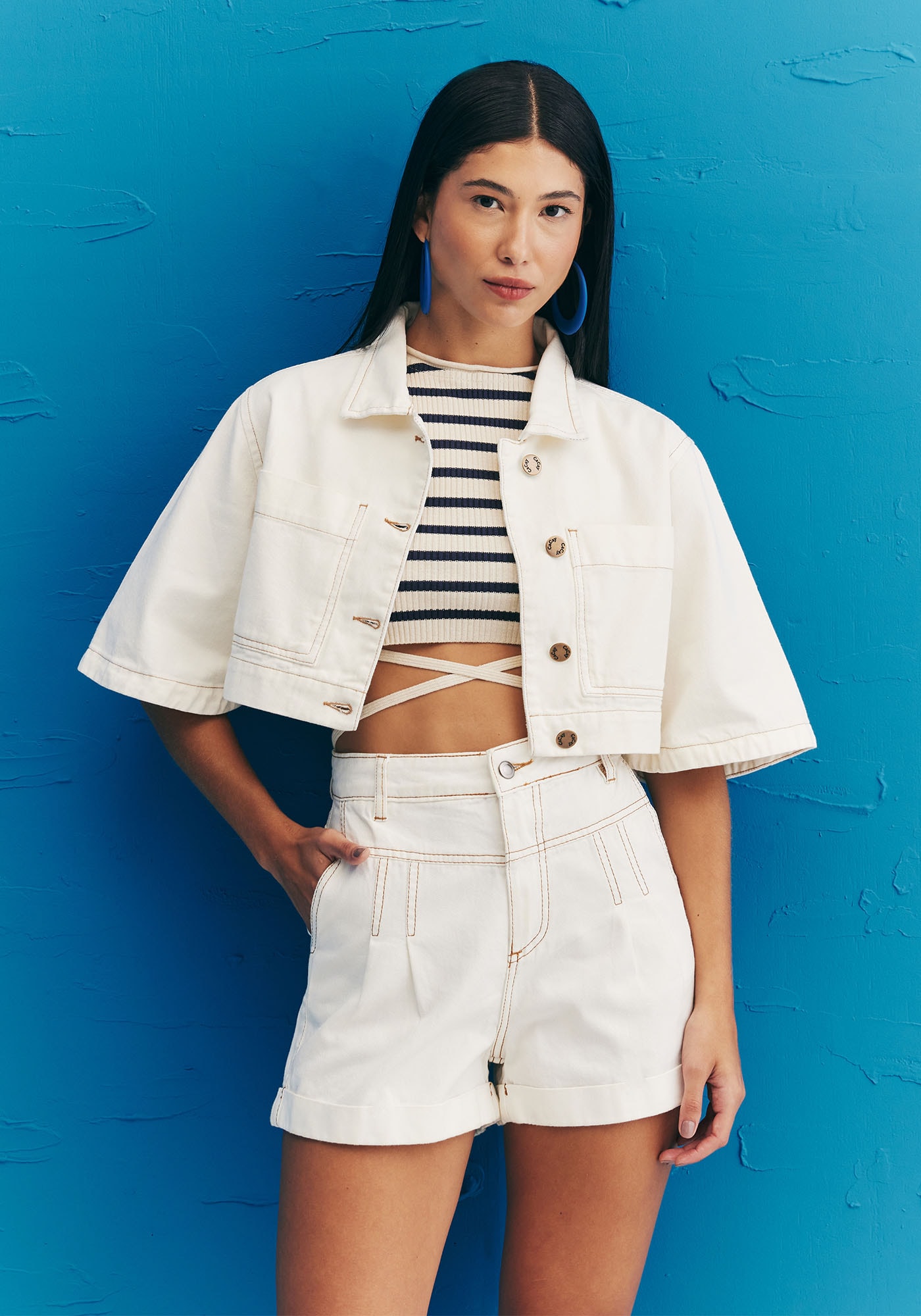 O Short de Sarja com pregas frontais é um clássico e indispensável em qualquer guarda-roupas. Apresenta passadores no cós e fechamento em braguilha, e o detalhe da barra dobrada e pespontos adicionam um toque sofisticado ao visual. Confeccionado em 100% Algodão, é uma peça que proporciona muito conforto e estilo sendo ideal para tornar composições casuais e despojadas em mais elegantes.