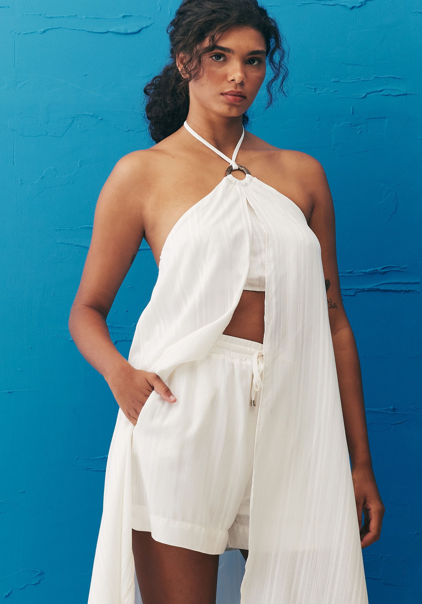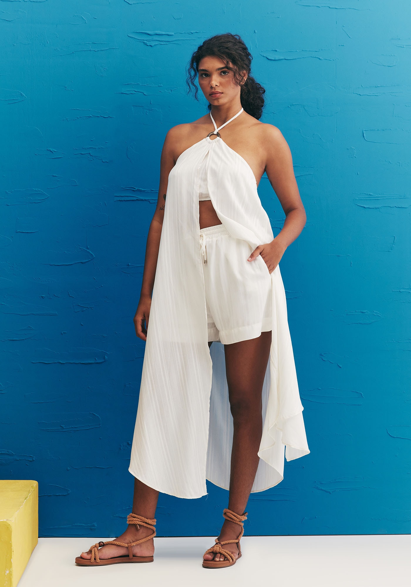 Confeccionado em tecido 100% viscose, o shortinholiso é perfeito para um look de verão mais sofisticado. O modelo cintura altapossui pala em elástico com amarração em túnel e bolsos laterais, que adicionampraticidade à peça. A cor lisa possibilita diversas combinações.
