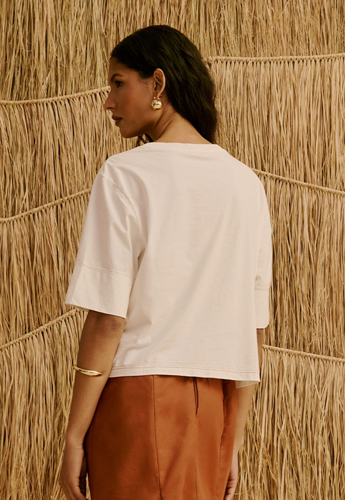 Confeccionada em tecido leve, a camiseta oferece conforto prolongado e toque agradável para o dia a dia. O bordado adiciona um detalhe artesanal que reforça o estilo casual elegante, ideal para compor looks de trabalho descontraído, encontros informais ou momentos de lazer. Combine com calças de alfaiataria, saias fluidas ou acessórios delicados para criar produções versáteis e cheias de personalidade.