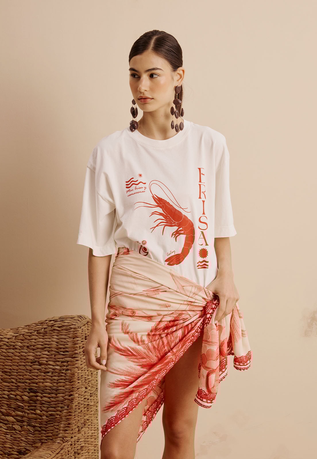 A T-Shirt Brisa da CaCay é uma peça que traduz leveza e personalidade em cada detalhe. Com uma ilustração central de camarão acompanhada de elementos marinhos como ondas e sol, além da frase Mar brisa y amanecer em escrita cursiva, essa camiseta expressa um estilo descontraído e artístico. O design vertical da palavra BRISA adiciona um toque contemporâneo, tornando a peça ideal para quem busca autenticidade no visual. Seu caimento é confortável e versátil, adaptando-se bem ao corpo sem perder a fluidez, como mostra a modelo que veste tamanho P e tem 1,77m de altura.