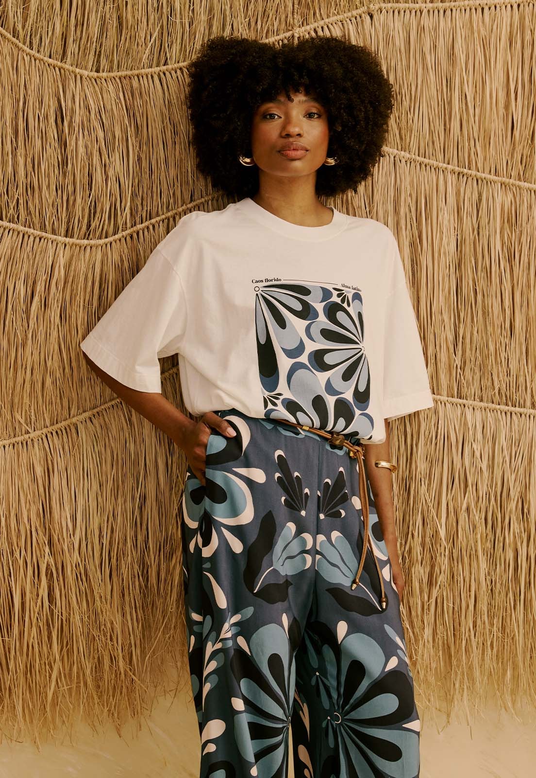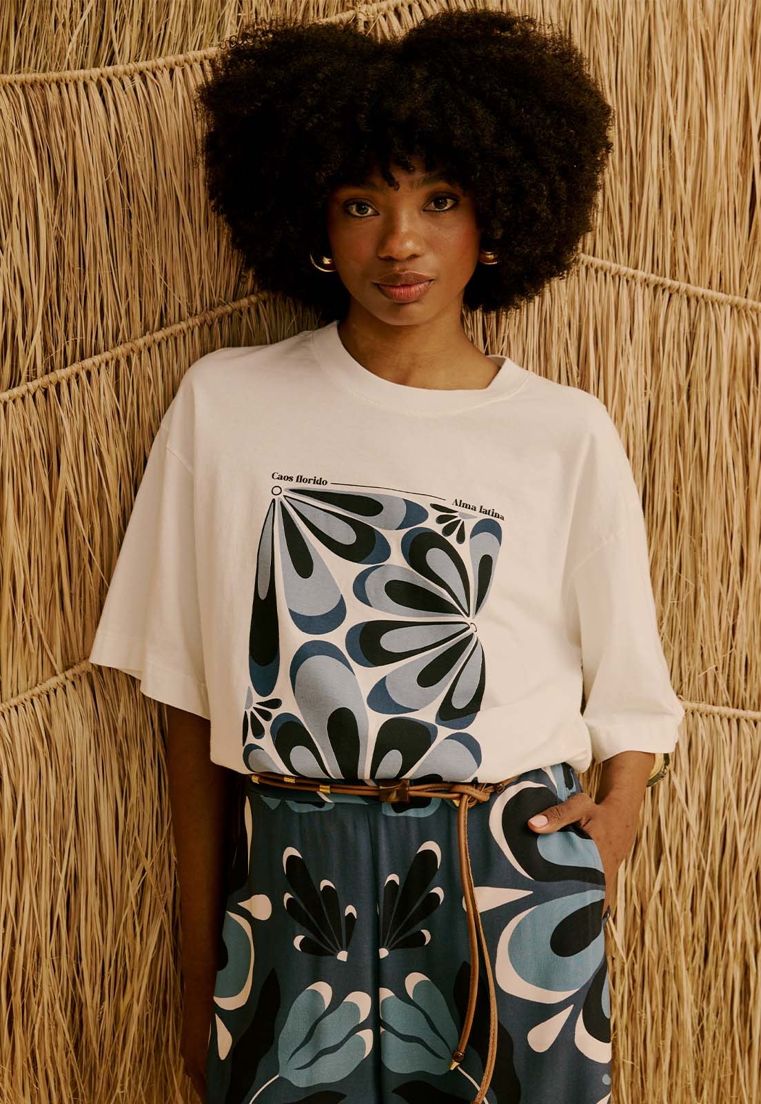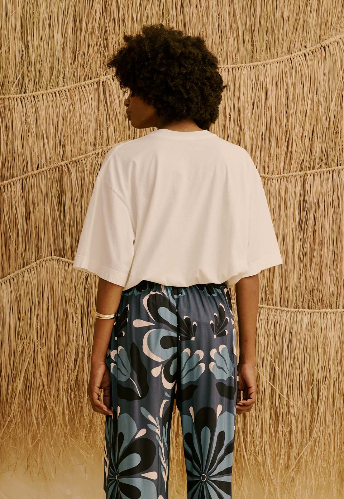 A T-Shirt Cantuta da CaCay apresenta modelagem reta e confortável, com caimento solto que garante a mobilidade. O comprimento clássico acompanha a linha do corpo de forma natural e favorece combinações versáteis. A forma é grande, então se estiver em dúvida entre dois tamanhos, opte pelo menor e consulte a tabela de medidas para precisão. Na foto, a modelo tem 1,75m, veste manequim 36 e está usando o tamanho P.