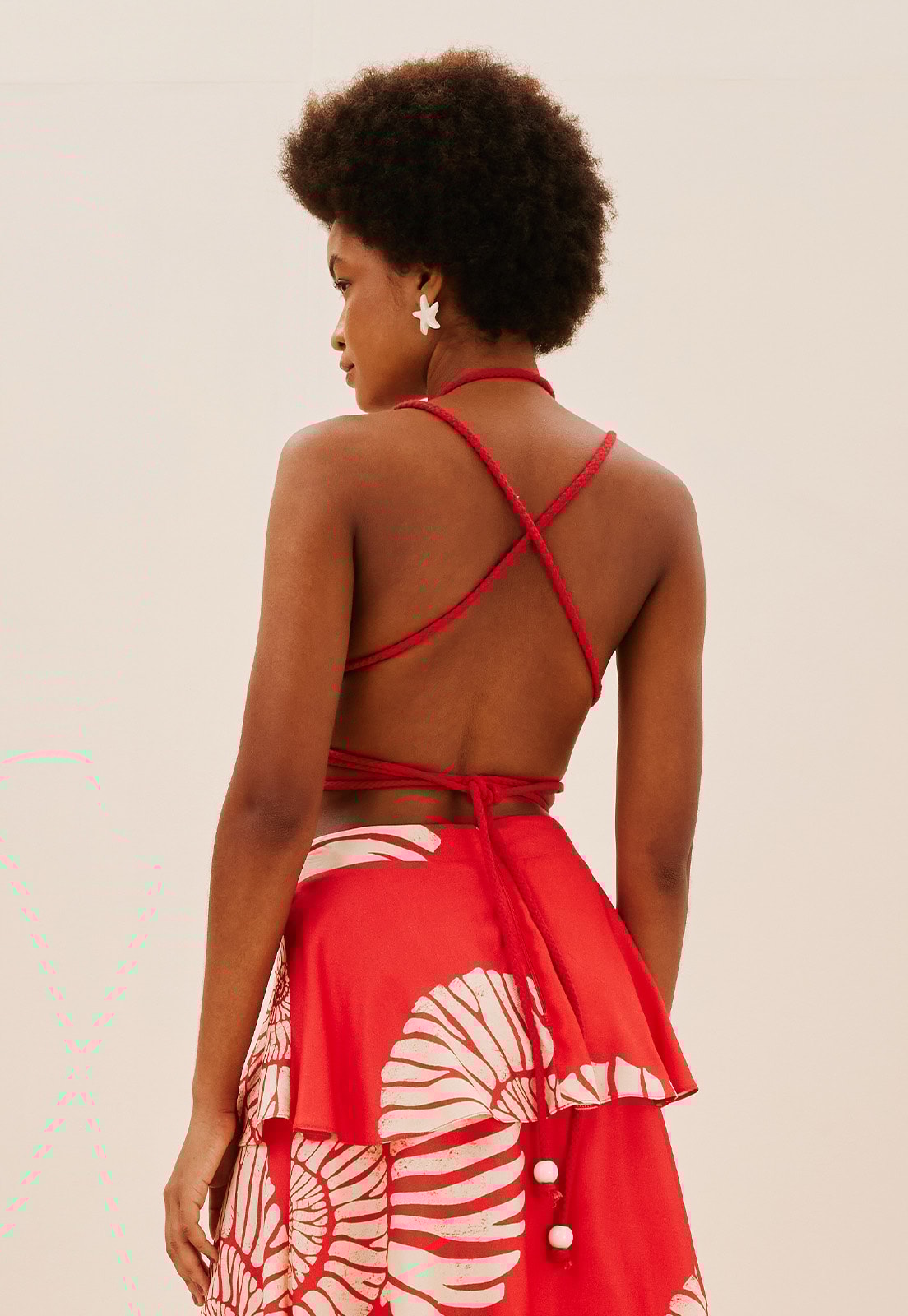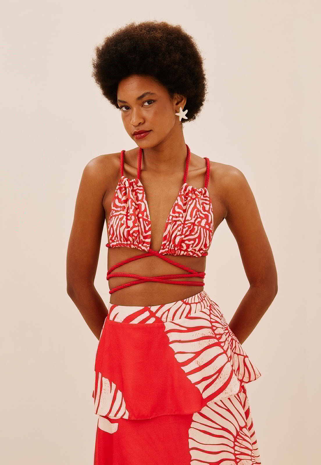 Este Top no modelo cortininha se destaca porsuas alças em cordas que adicionam um toque artesanal e original à peça. Asamarrações na cintura e nas costas trazem estilo e modernidade além de garantirum ajuste personalizado ao corpo. Sua estampa Costas dos Corais proporciona umvisual vibrante e tropical. Confeccionado em 100% Viscose, ele é ideal paracomposições leves, modernas e descontraídas.