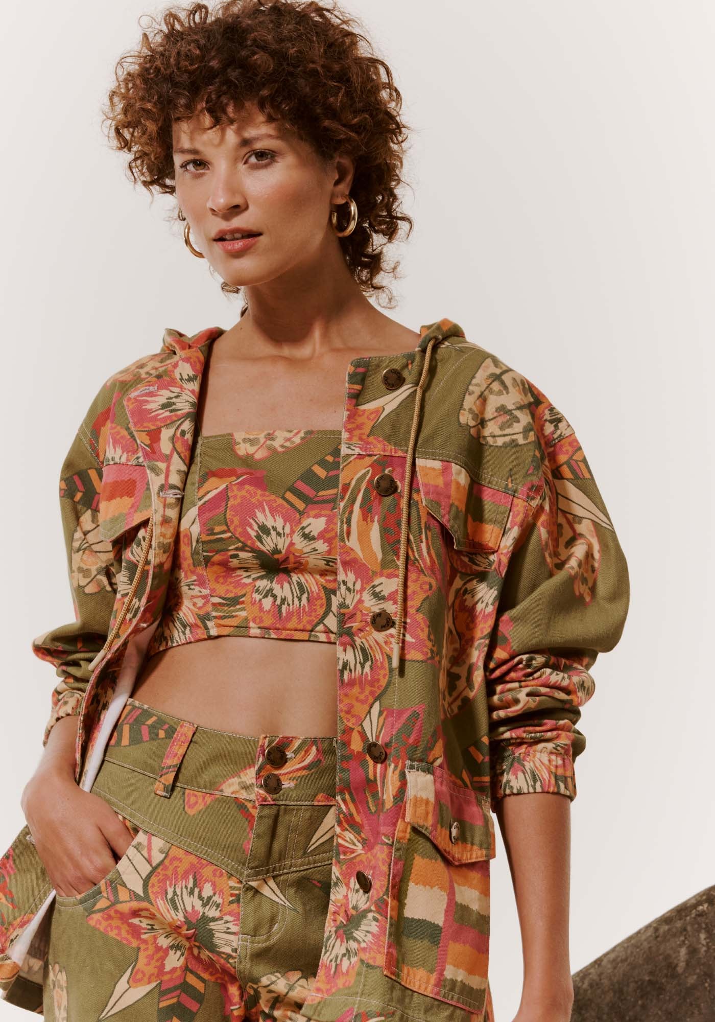 O top faixa em sarja é a cara do verão. Pode ser usado emconjuntinho ou em um mix de estampas com outros modelos da coleção.