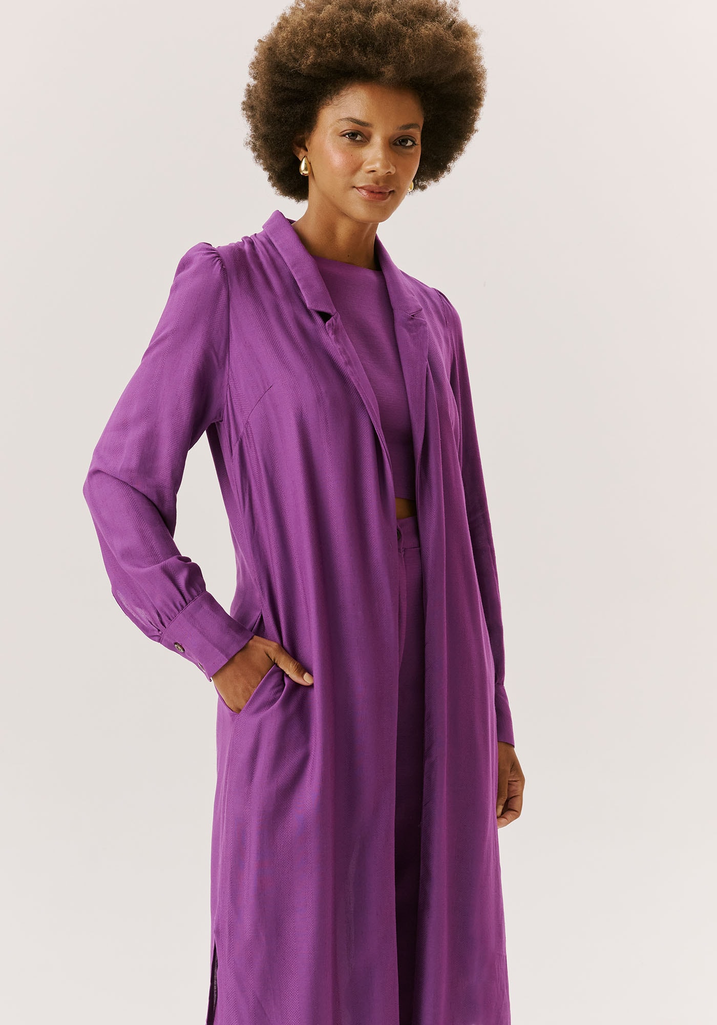 O Trench Coat Alongado é um modelo clássico com um toque contemporâneo adicionado. Com comprimento alongado, ele apresenta gola tradicional, mangas levemente bufantes e punho com fechamento em botões garantindo um visual sofisticado. Seu tecido é de composição 97% Viscose e 3% Linho e oferece um caimento leve e fresco, que traz movimento para o visual. Ideal para dias de meia estação ou para compor sobreposições elegantes, este modelo de trench coat é indispensável no guarda-roupas moderno.