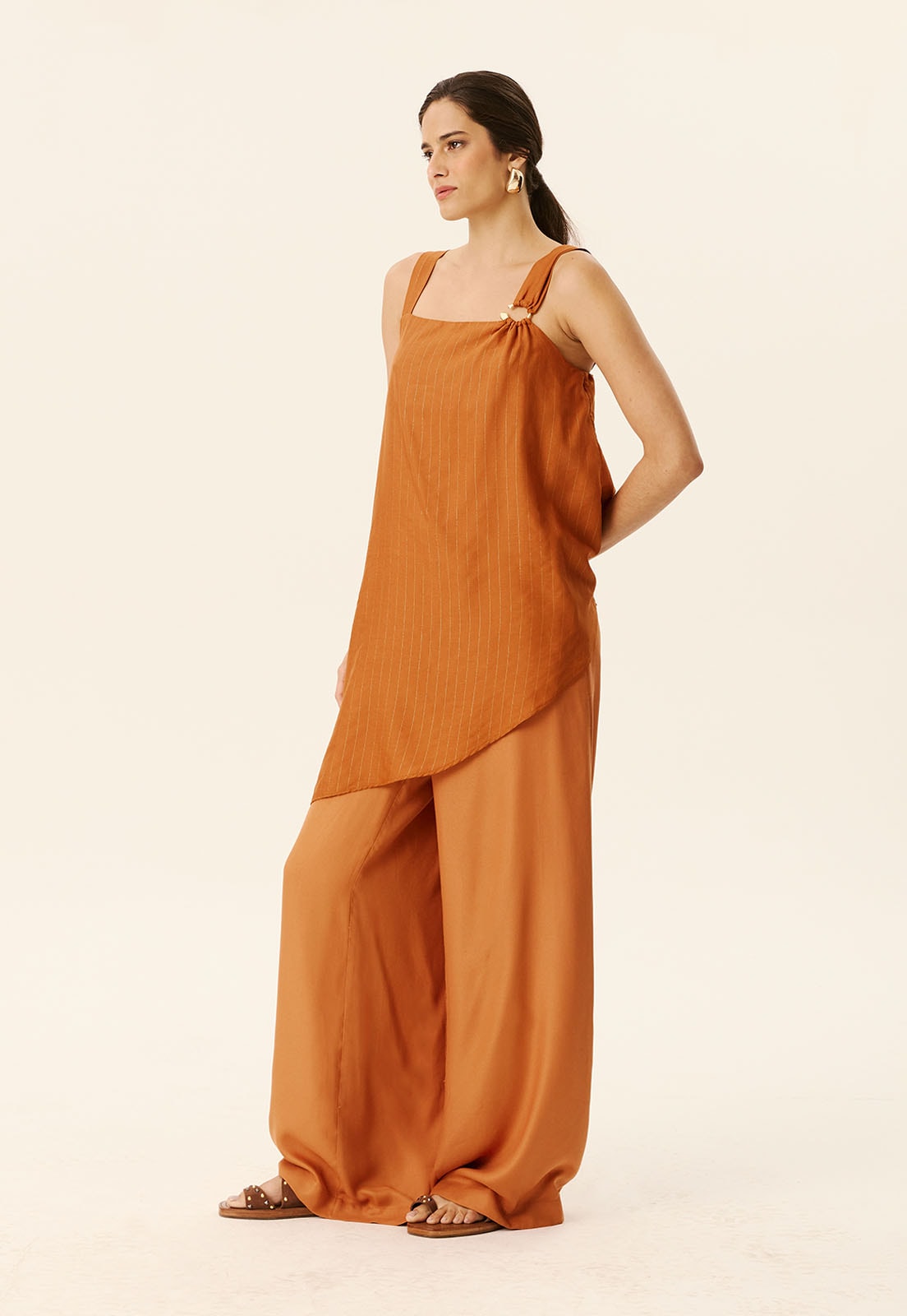 A Túnica Argola Irregular CaCay é a peça que traduz leveza e sofisticação em um design assimétrico que valoriza o movimento. Confeccionada em tecido com 99% viscose e 1% poliéster, oferece toque macio e caimento fluido, perfeito para quem busca conforto sem abrir mão do estilo. O detalhe da argola na alça adiciona um charme contemporâneo, enquanto a modelagem irregular cria um visual único e elegante, ideal para compor looks versáteis.