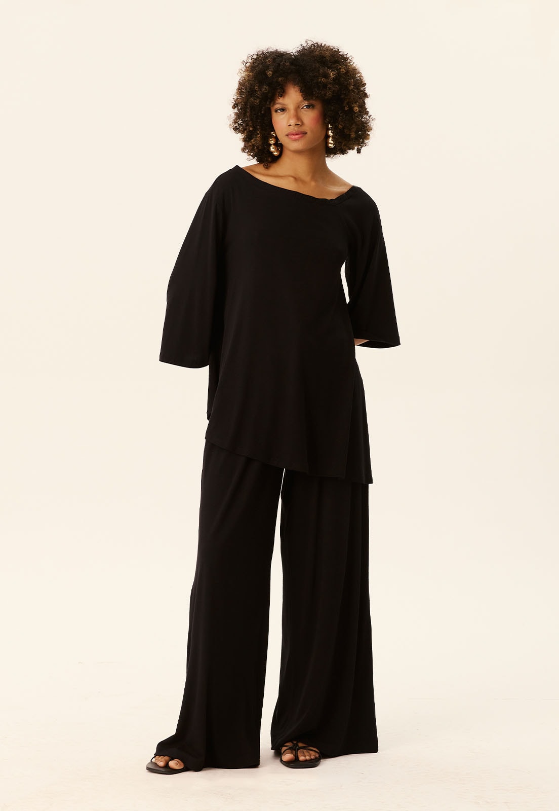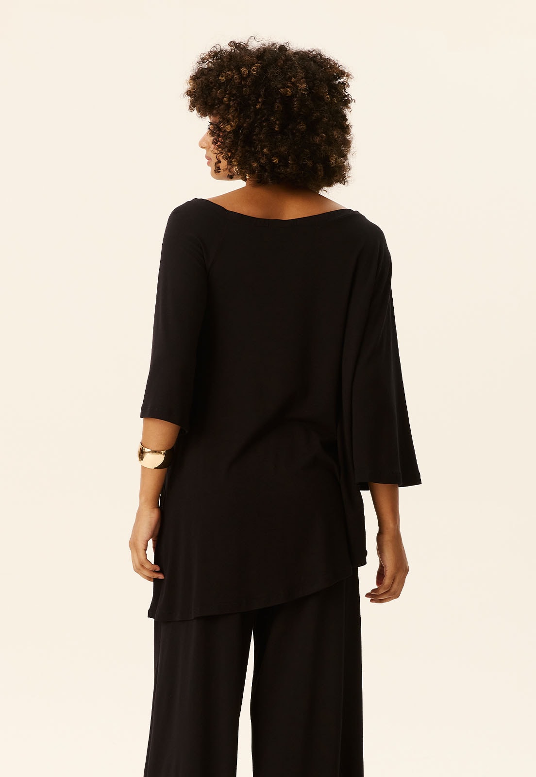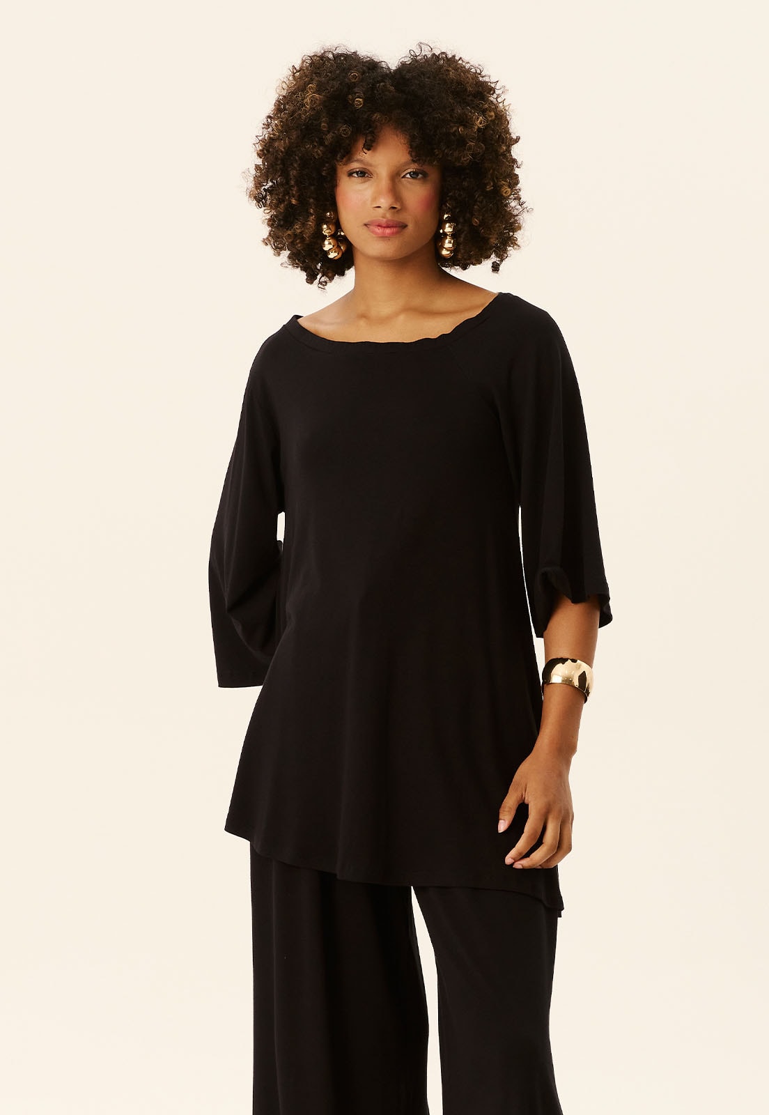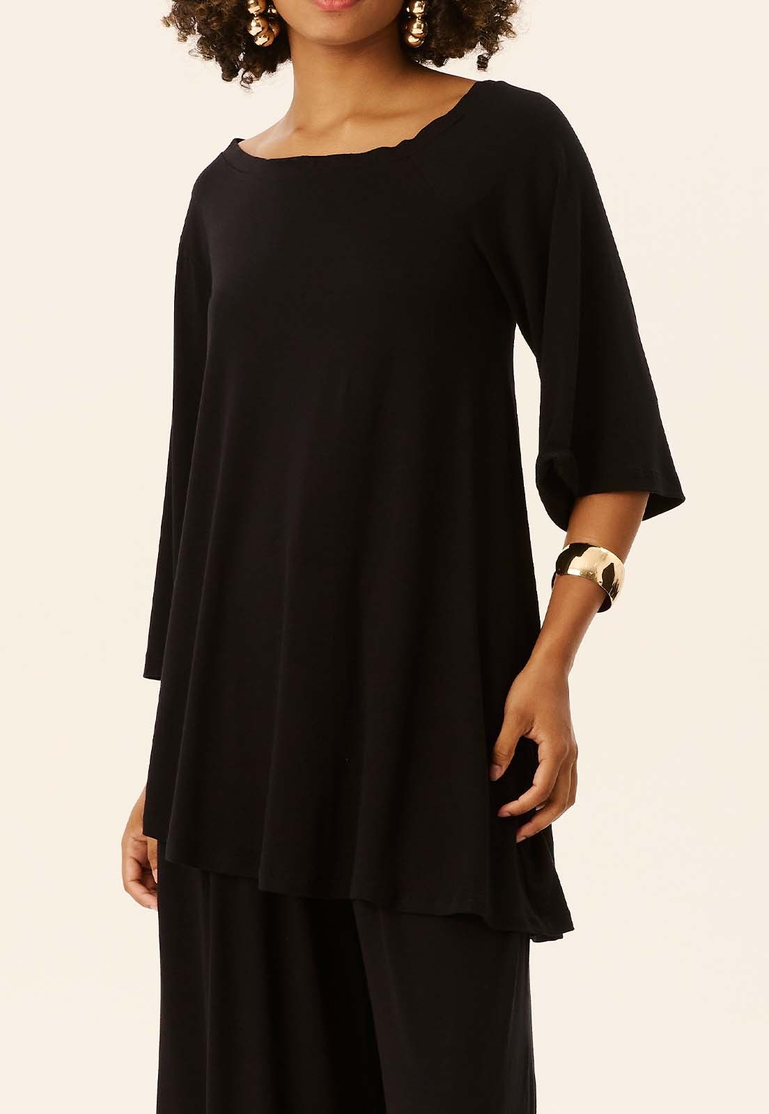 Perfeita para diferentes ocasiões do look casual chic ao office style a túnica combina bem com calças retas, pantalonas ou até saias midi, além de acessórios como maxi colares ou pulseiras estruturadas. Aposte em sandálias minimalistas ou flats para um visual descomplicado e elegante.