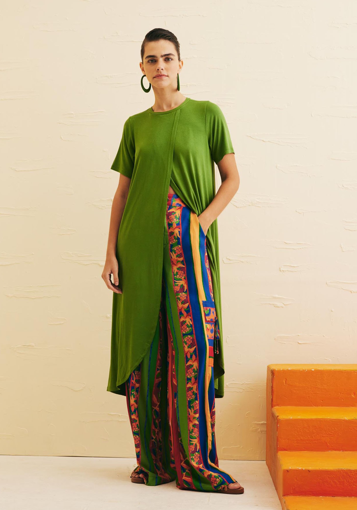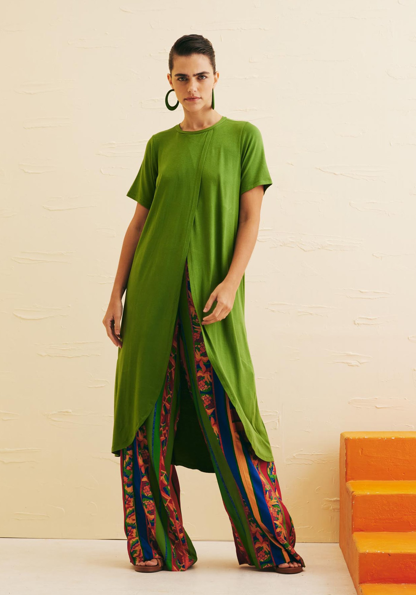 A túnicalisa é uma peça versátil e confortável. Confeccionada em malha 96% viscose e 4%elastano, o modelo transpassado na frente deixa a peça moderna, com movimento eleveza. Pode ser combinada com outras peças lisas ou estampadas.