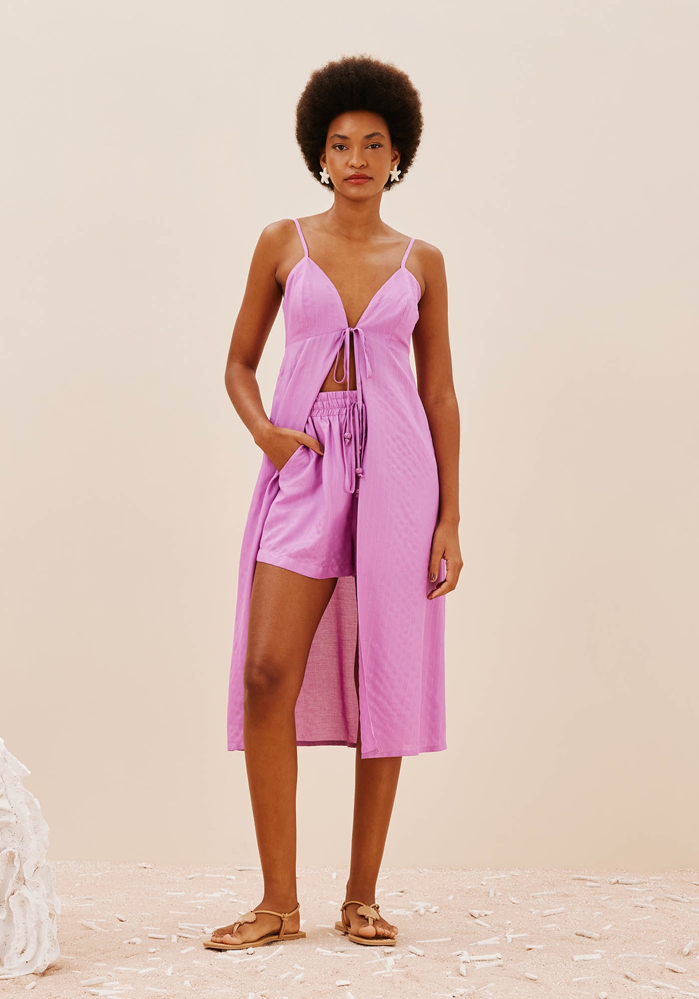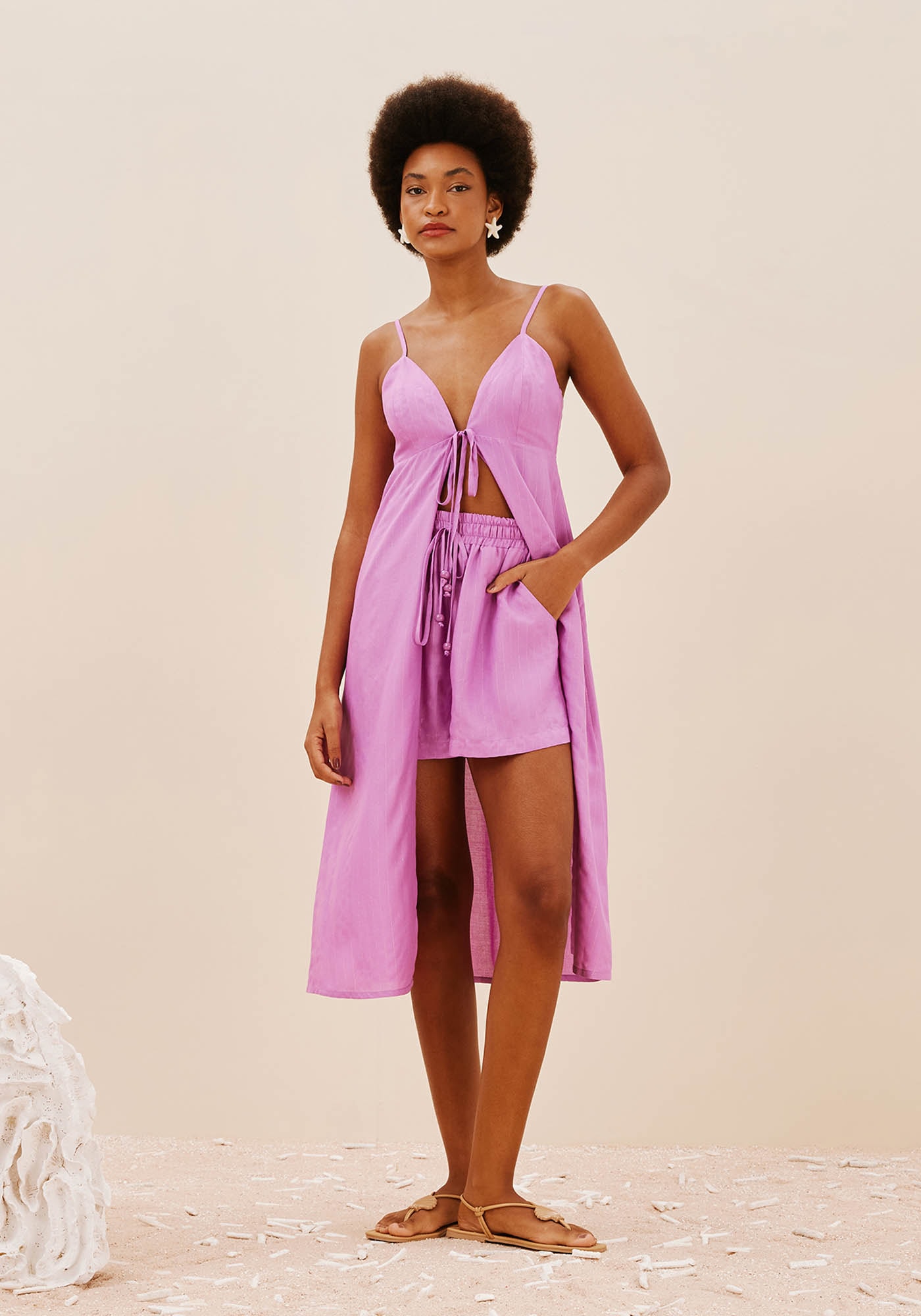A veste lisa é uma peça moderna eversátil, perfeita para compor diferentes looks. Confeccionada em tecido 99%viscose, possui amarração frontal com alça fina e um decote que valoriza obusto.