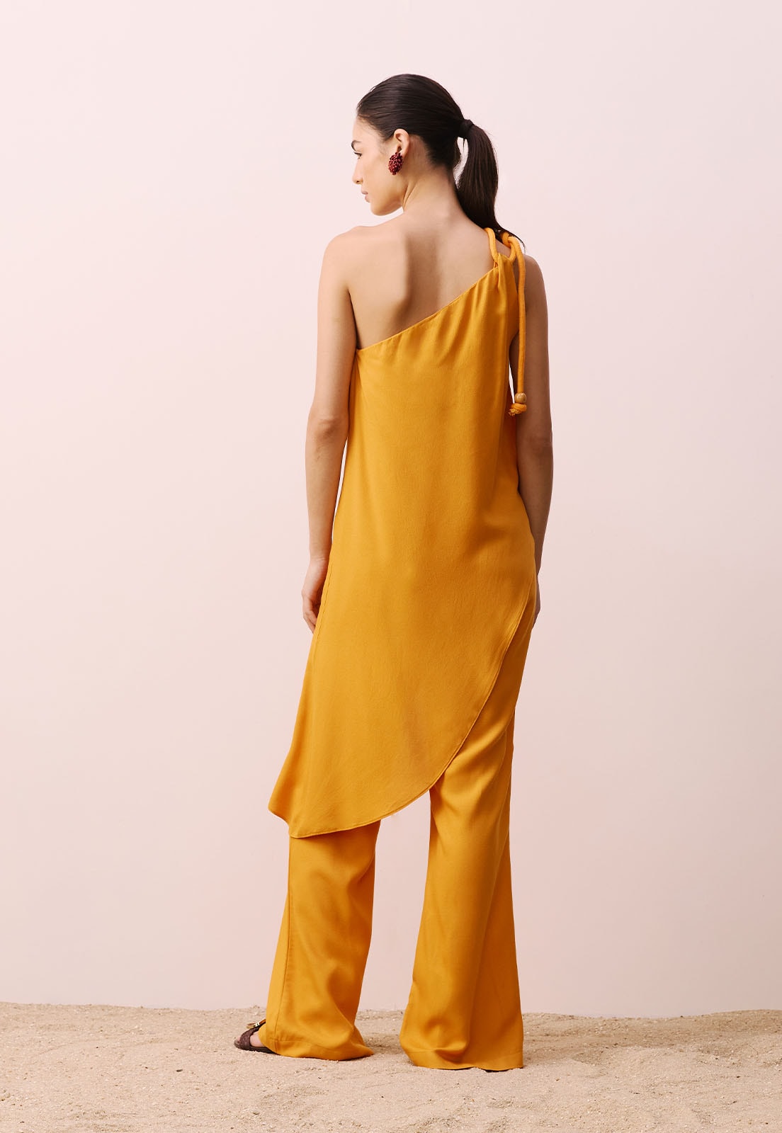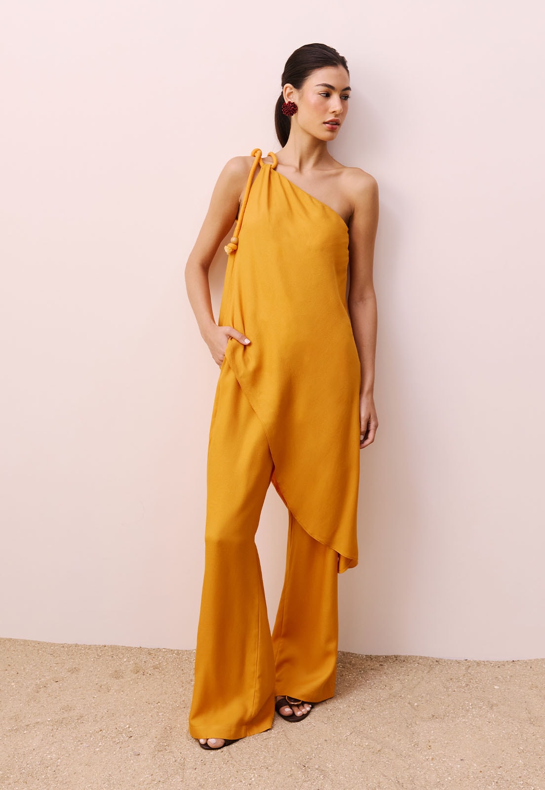 A Veste Assimétrica com Corda da CaCay é a escolha ideal para quem busca sofisticação com leveza. Confeccionada em 100% viscose, essa peça apresenta um caimento fluido e confortável, valorizando o movimento natural do corpo. Seu design assimétrico com alça única e detalhe de corda no ombro cria um visual marcante e contemporâneo, enquanto o comprimento traseiro levemente mais longo adiciona elegância sem esforço. A modelagem solta garante liberdade e frescor, perfeita para ocasiões que pedem estilo com conforto do almoço casual ao evento noturno.Versátil e atemporal, essa veste combina perfeitamente com calças de alfaiataria, saias midi ou até mesmo jeans retos, além de acessórios minimalistas como brincos geométricos ou bolsas estruturadas. A modelo veste tamanho P e tem 1,77m de altura, evidenciando o caimento impecável da peça. Descubra o toque único da CaCay e transforme seu look com autenticidade experimente a Veste Assimétrica com Corda e sinta o design que fala por você.