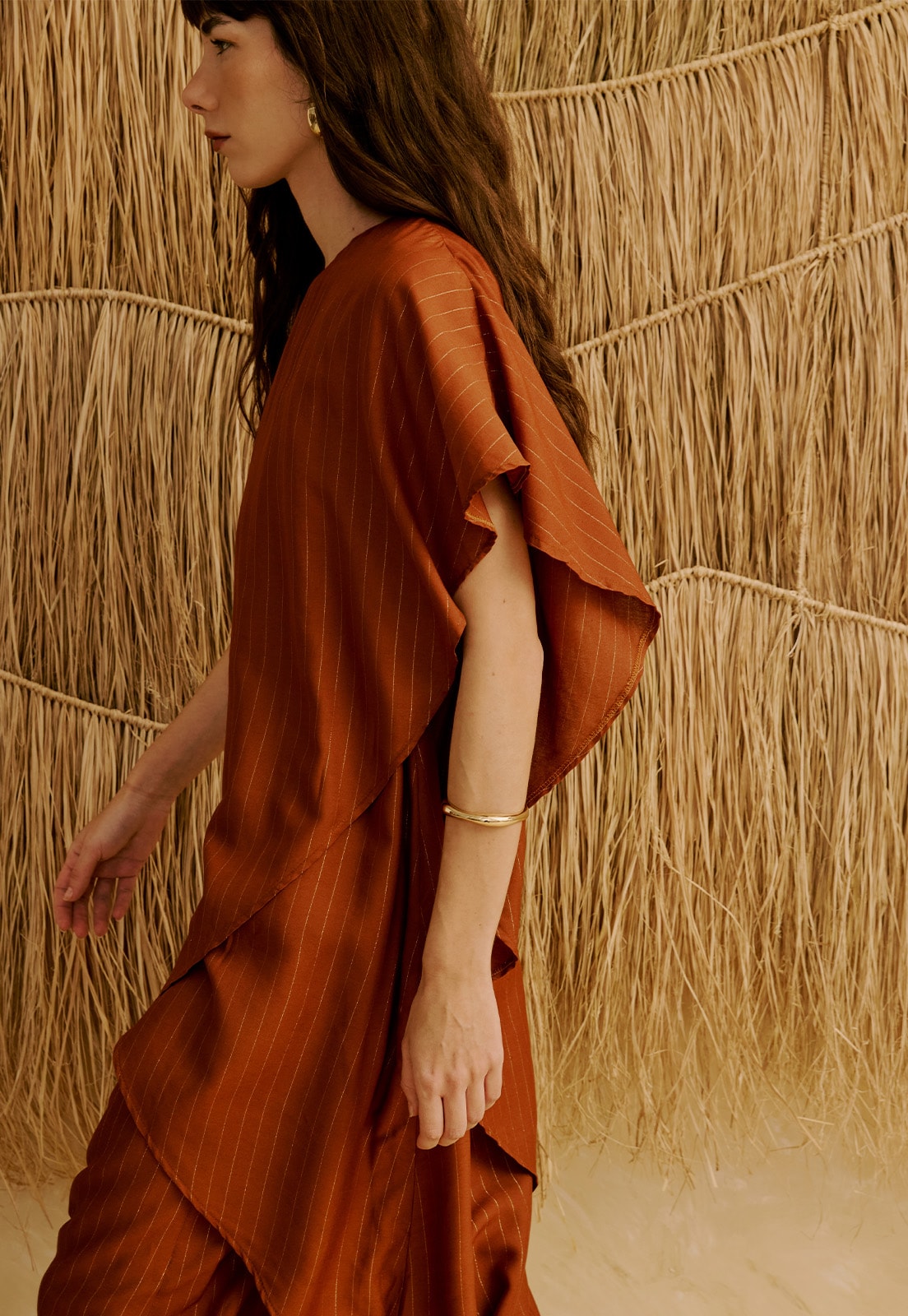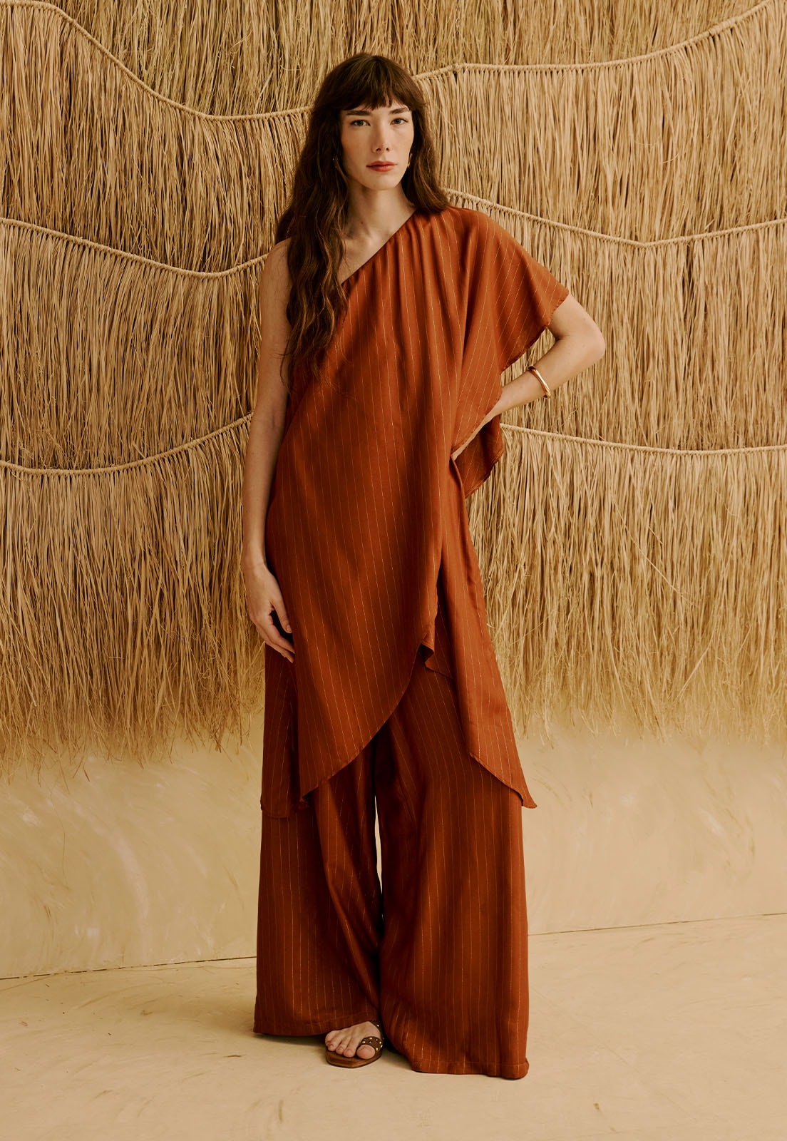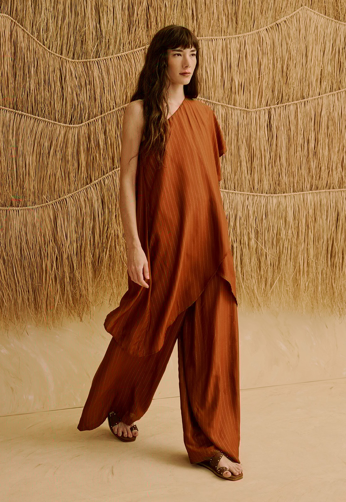 Confeccionada em tecido leve de viscose com poliéster, a peça não possui elasticidade, mas oferece conforto prolongado durante o uso. Ideal para ocasiões casuais, trabalho ou eventos diurnos, seu design assimétrico traz sofisticação atemporal com estampa discreta em textura. Combine com acessórios naturais, sandálias de tiras ou clutch minimalista para compor um look marcante.