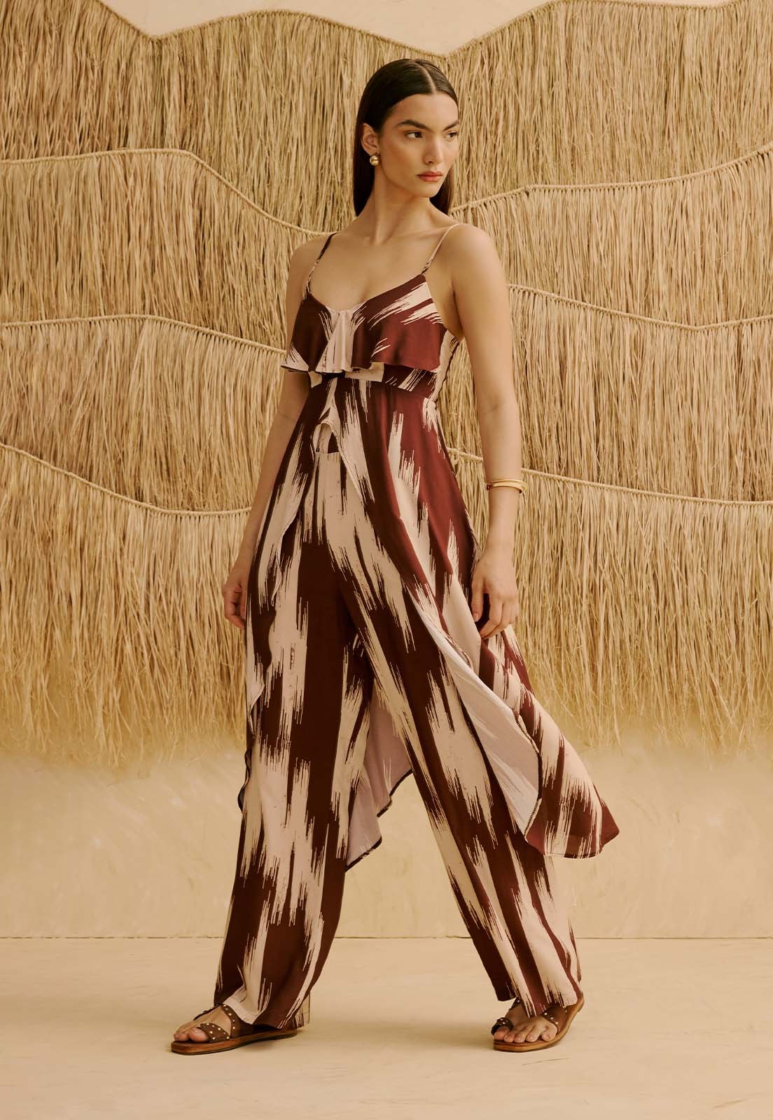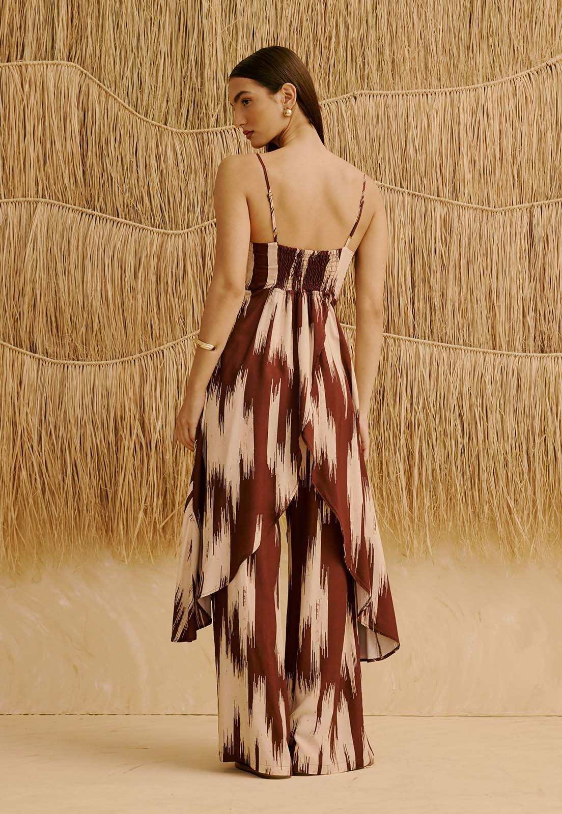 A Veste com Babado no Decote Estampada Amantani da CaCay tem modelagem ampla e fluida, com caimento leve que acompanha os movimentos do corpo. O decote com babado e as alças finas reguláveis valorizam o busto com delicadeza, enquanto o lastex nas costas garante ajuste confortável na cintura. A silhueta se mantém solta no quadril e o comprimento longo traz elegância. A forma é grande, então se estiver em dúvida entre dois tamanhos, recomendamos escolher o menor. A modelo da foto tem 1,75m, veste manequim 36 e está usando o tamanho P.