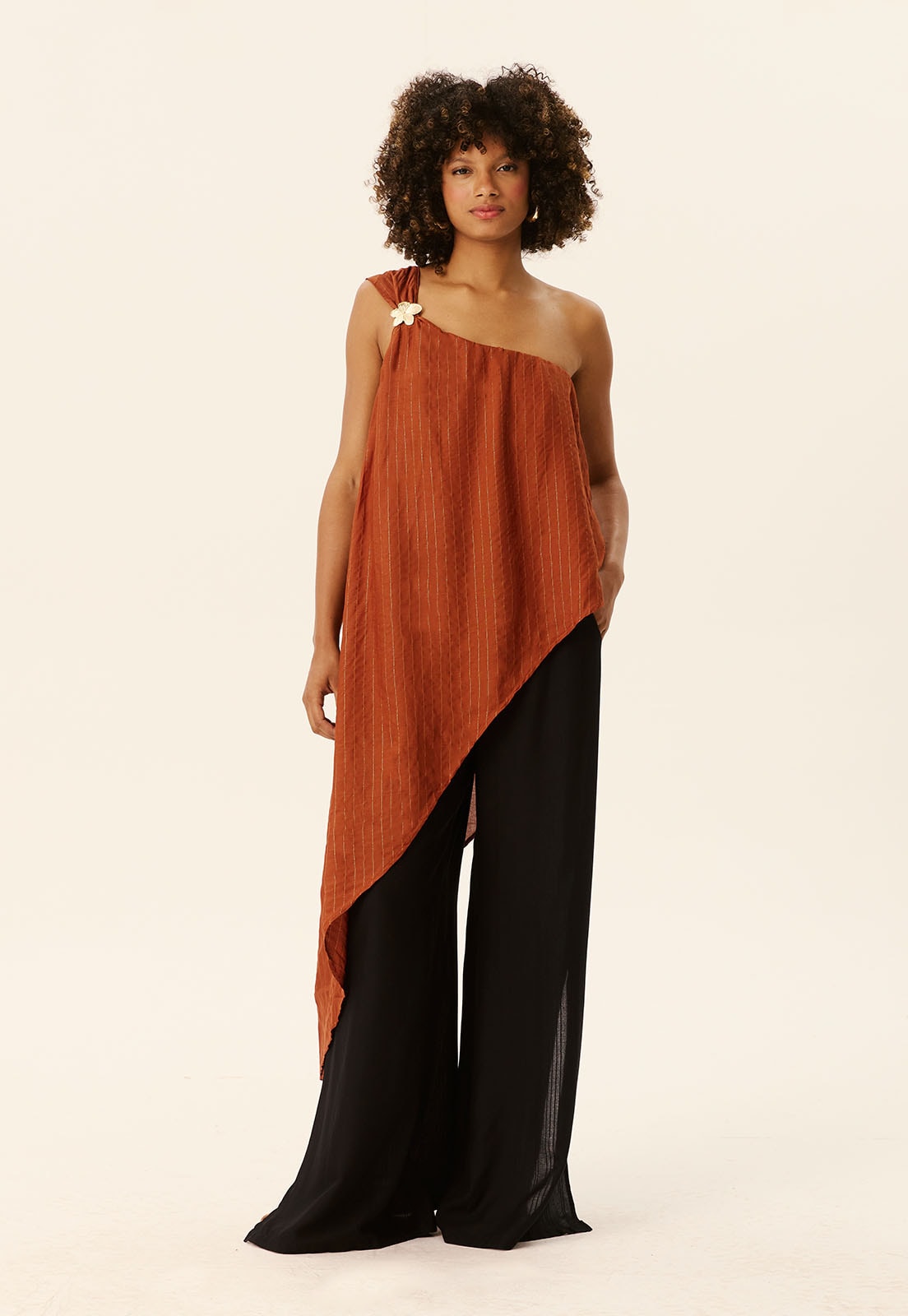 Versátil para diferentes ocasiões, do casual chic ao evento especial, combina perfeitamente com pantalonas, saias amplas ou acessórios minimalistas para um look equilibrado. Aposte em sandálias ou rasteiras para um visual descontraído ou em saltos para um toque refinado.
