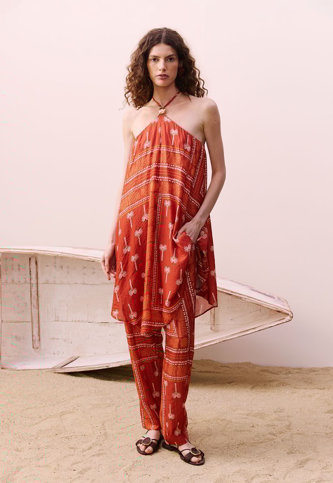Descubra a elegância fluida da Veste Pontas Detalhe Estampado Tauari, uma peça única que traduz leveza e sofisticação em cada movimento. Confeccionada em tecido de alta qualidade, composta por 99% viscose e 1% poliéster, essa blusa sem mangas com decote halter e barra assimétrica valoriza a silhueta com um caimento impecável. Ideal para composições que transitam entre o casual refinado e o chic praiano, ela é perfeita para quem busca estilo com autenticidade. A modelo da foto veste tamanho P e tem 1,77m, evidenciando a versatilidade da peça em diferentes biotipos.