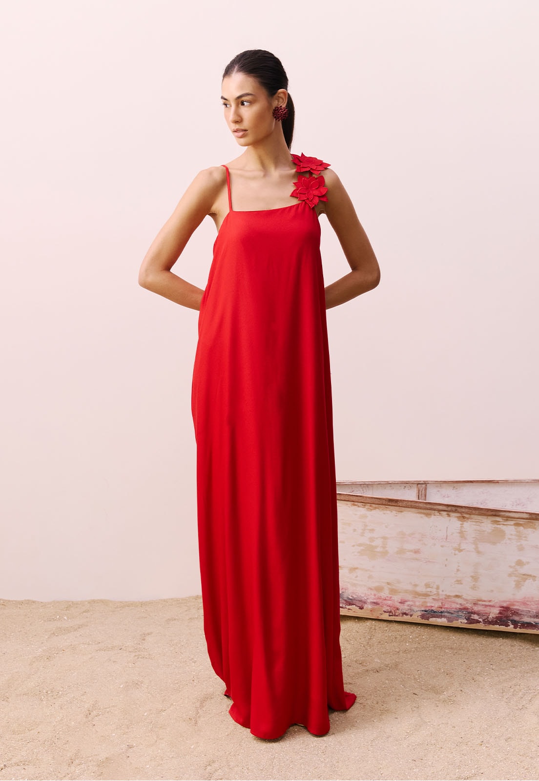 Versátil e fácil de combinar, o vestido harmoniza com sandálias de tiras, clutches neutras e acessórios dourados ou em tons naturais. A modelo veste tamanho P e tem 1,77m de altura, evidenciando o caimento solto e alongado da peça. Aposte no poder dos detalhes e leve para o seu guarda-roupa uma criação CaCay que celebra a beleza em cada movimento.