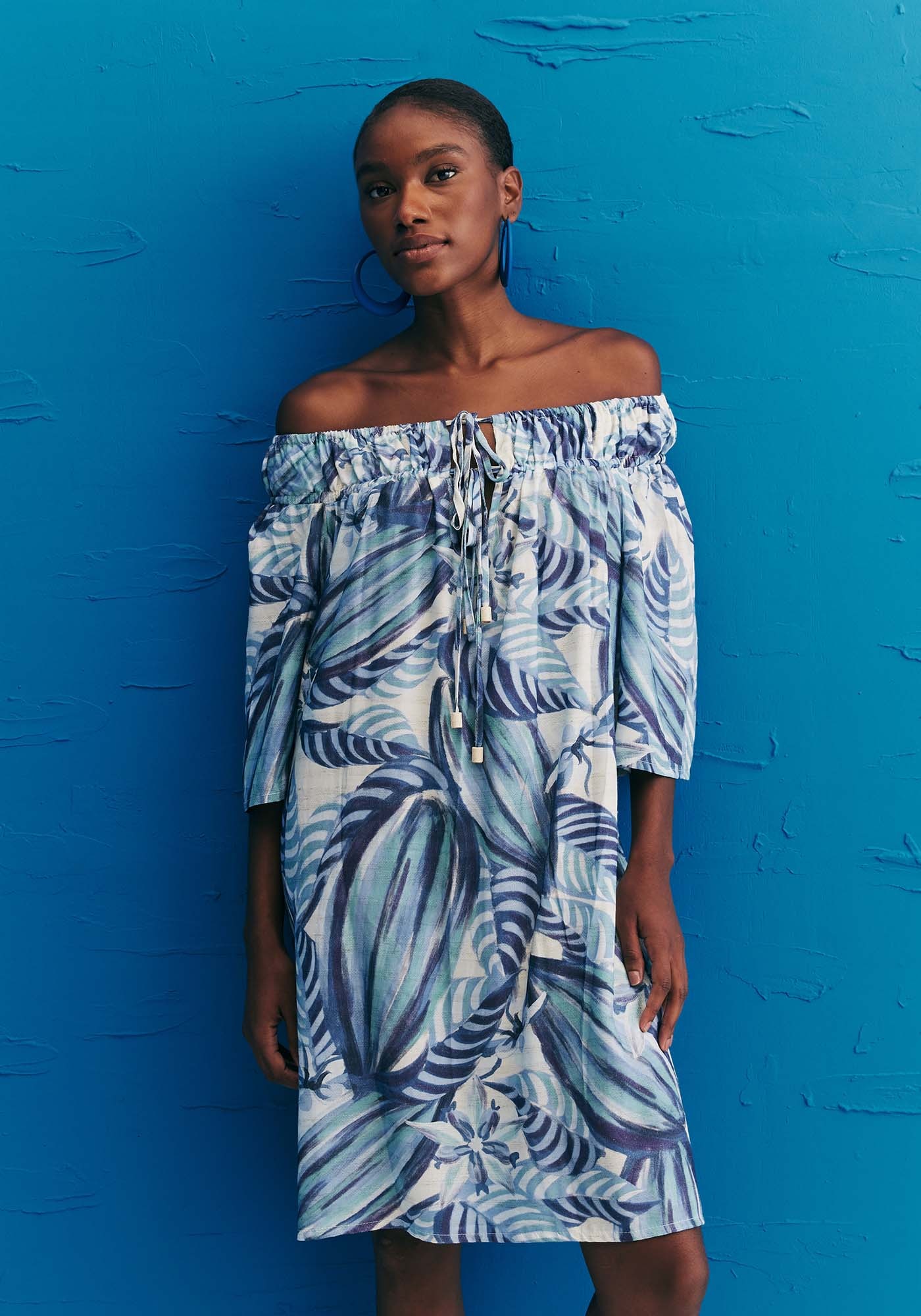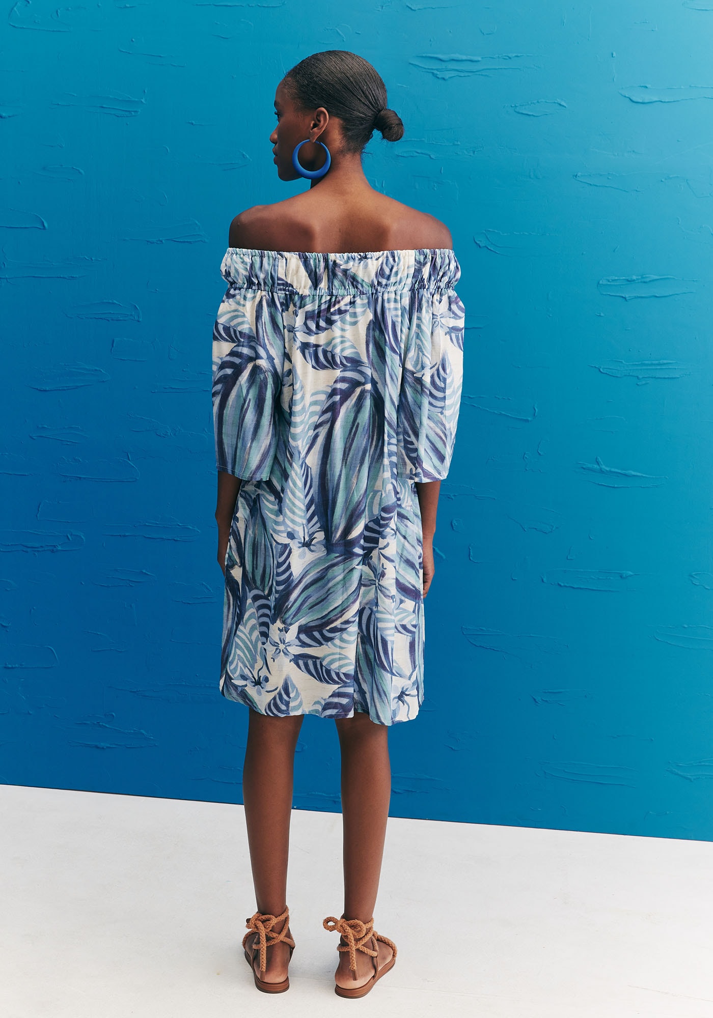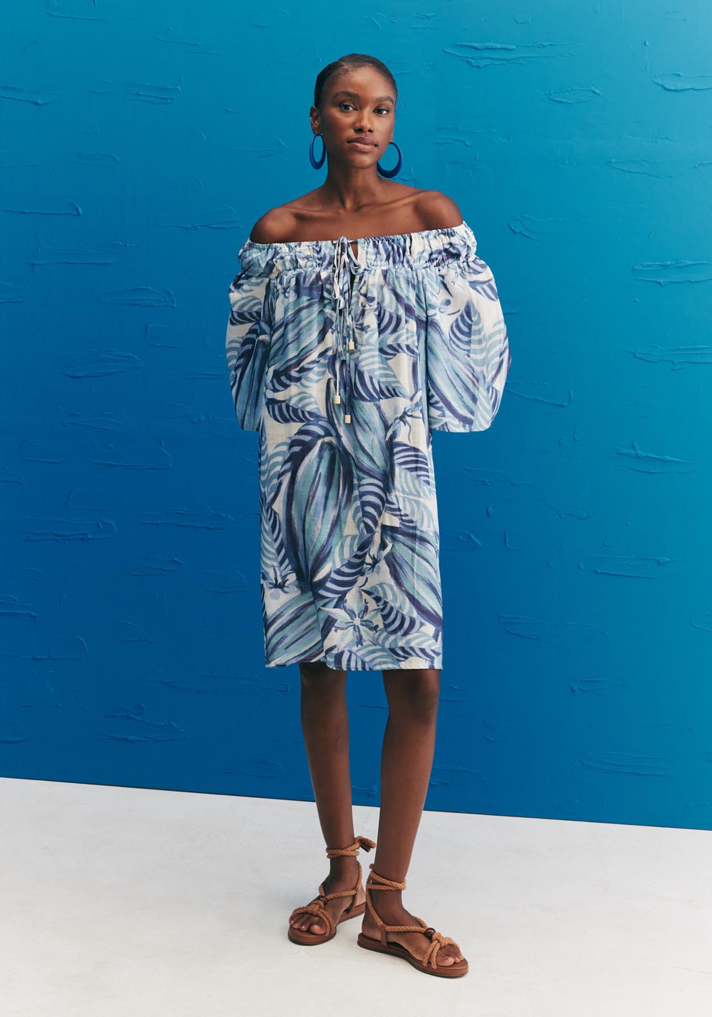 O Vestido Bata Curto c/ Elástico Estampado é umapeça versátil e descontraída, ideal para quem busca conforto sem abrir mão doestilo. Com modelagem ampla e fluida, ele oferece um caimento leve eproporciona praticidade. Possui mangas ¾ e decote ombro a ombro com pala edetalhe de amarração frontal com ponteiras que trazem um acabamentosofisticado. Sua composição é de 97% viscose e 3% linho. Este vestido éperfeito para compor looks casuais e despojados.