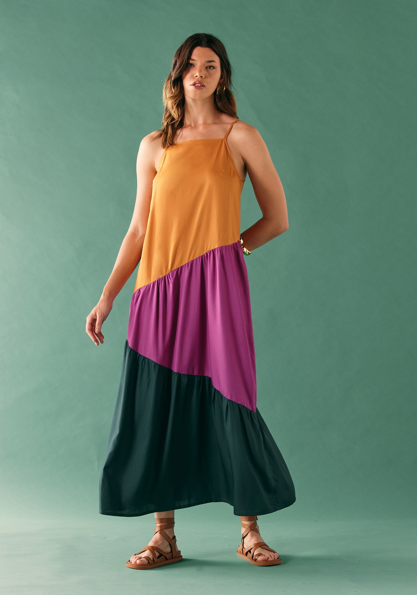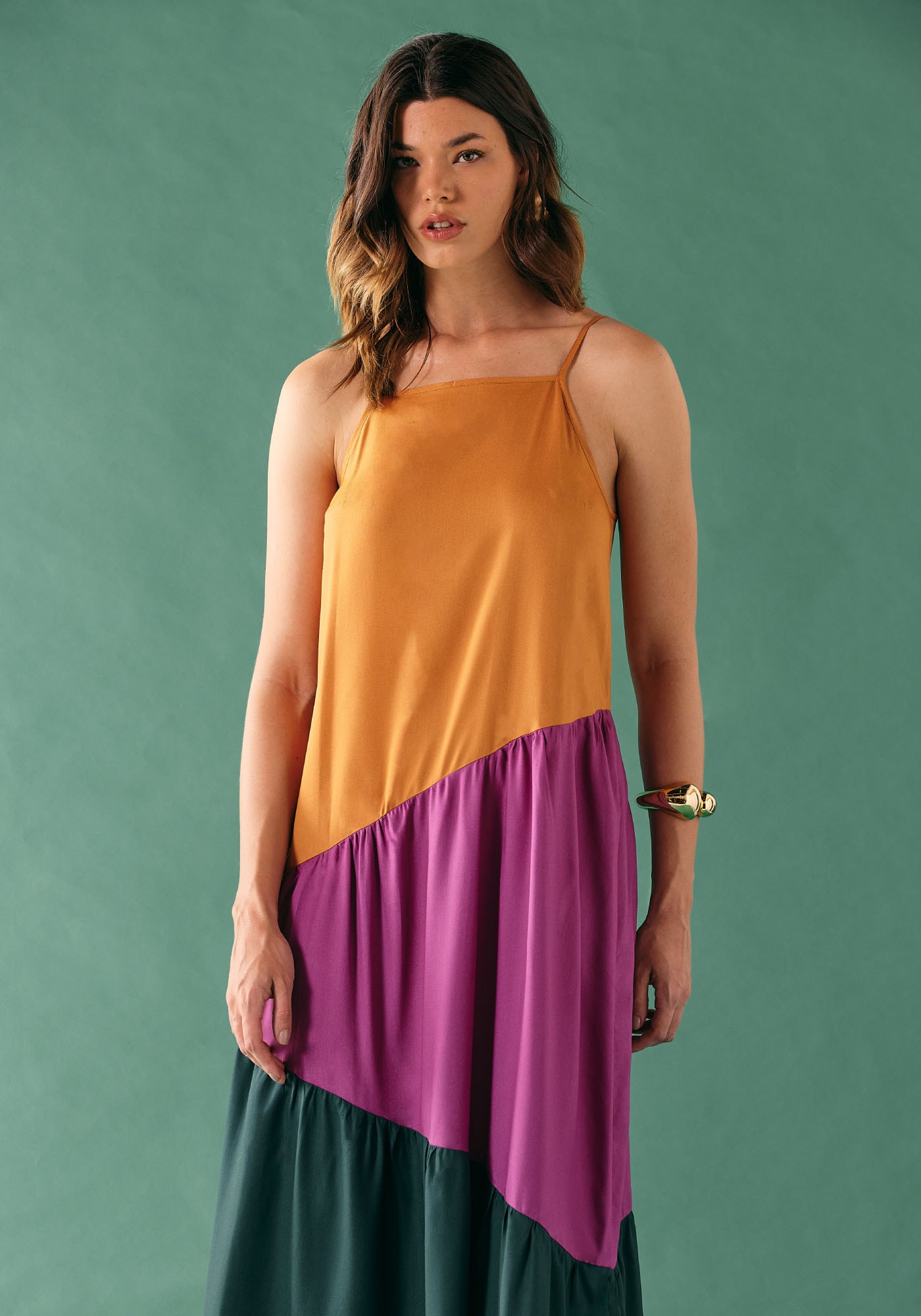 Confortávele estiloso, este vestido midi é confeccionado em tecido 100% viscose, com alçasfinas e cores vivas, esta peça é perfeita para desfrutar de um lindo dia deverão.