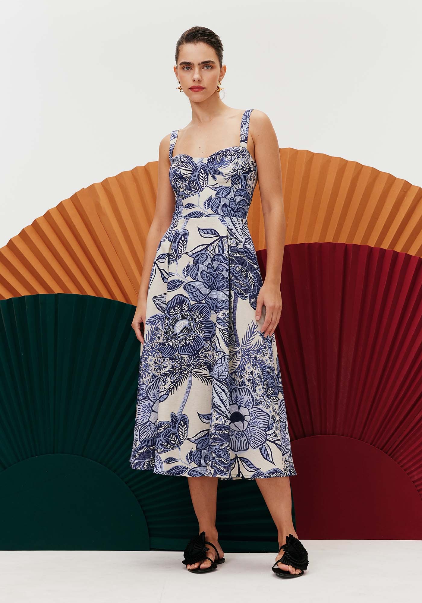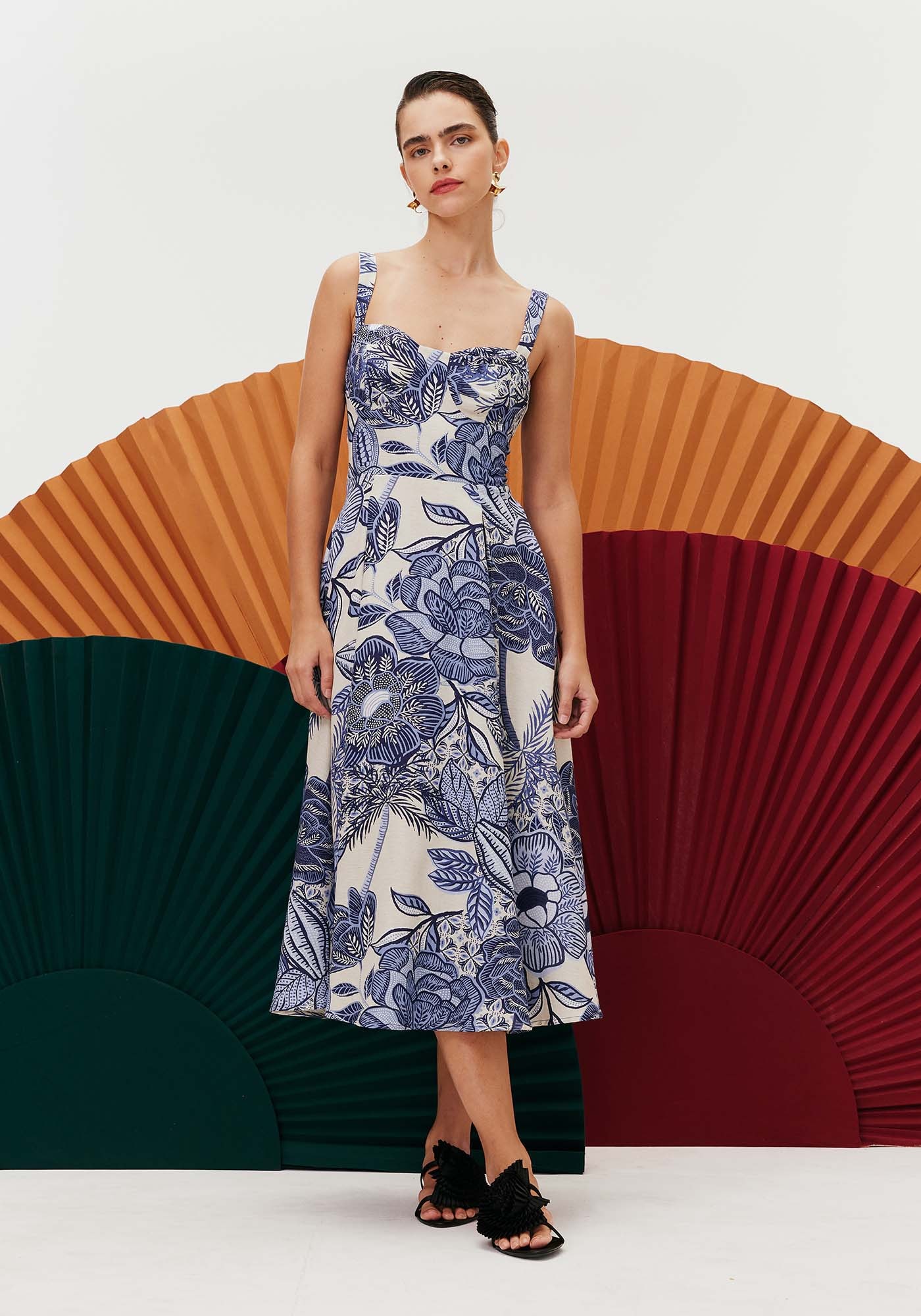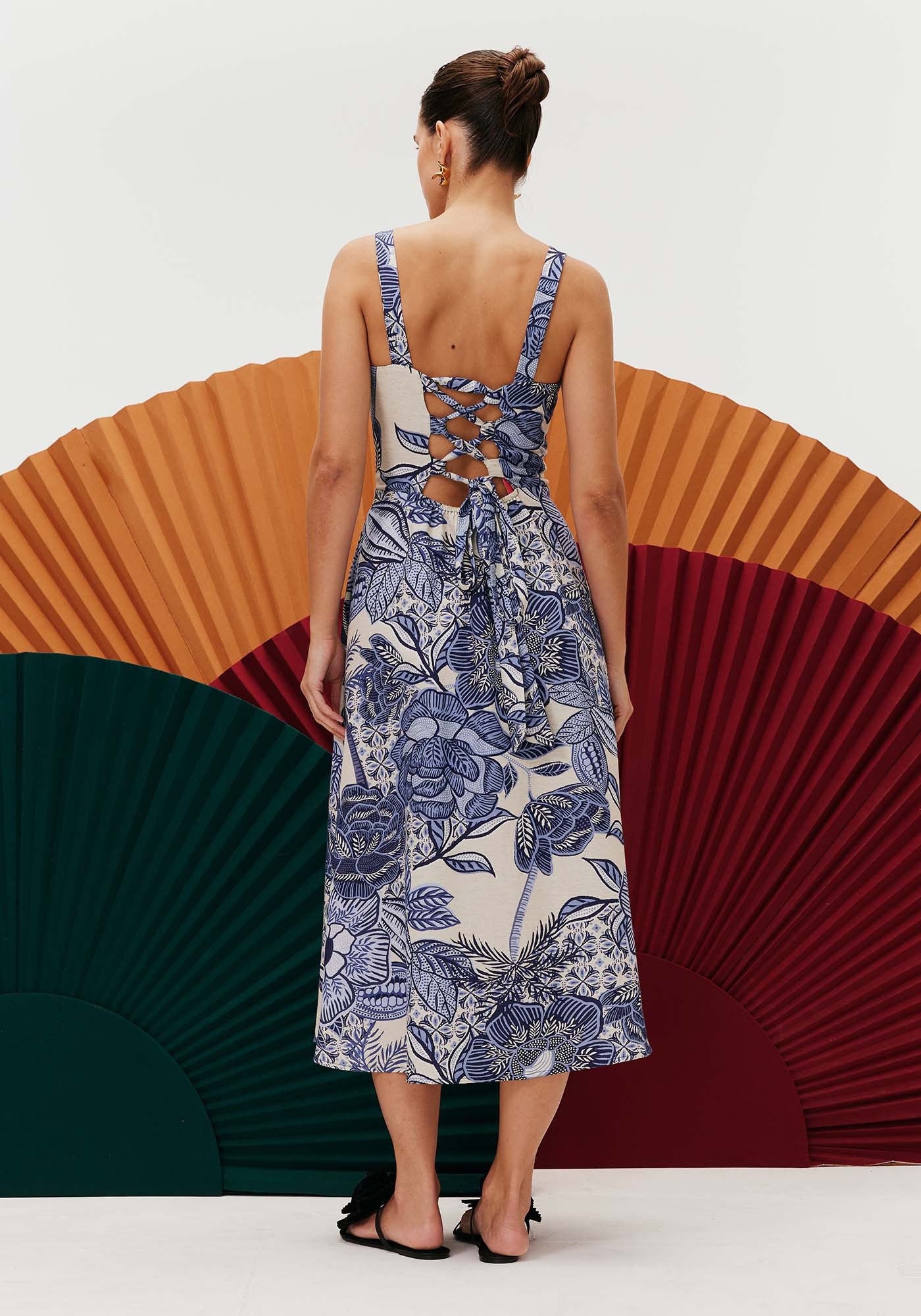 Confeccionado com tecido misto, 50% algodão29% viscose 15% modal e 3% linho, o vestido é um modelo super charmoso. O bojoestruturado e ajustado ao corpo valoriza o colo e a saia godê associada aocomprimento midi dá movimento à peça. O detalhe cruzado nas costas dá um toquesensual para o vestido.