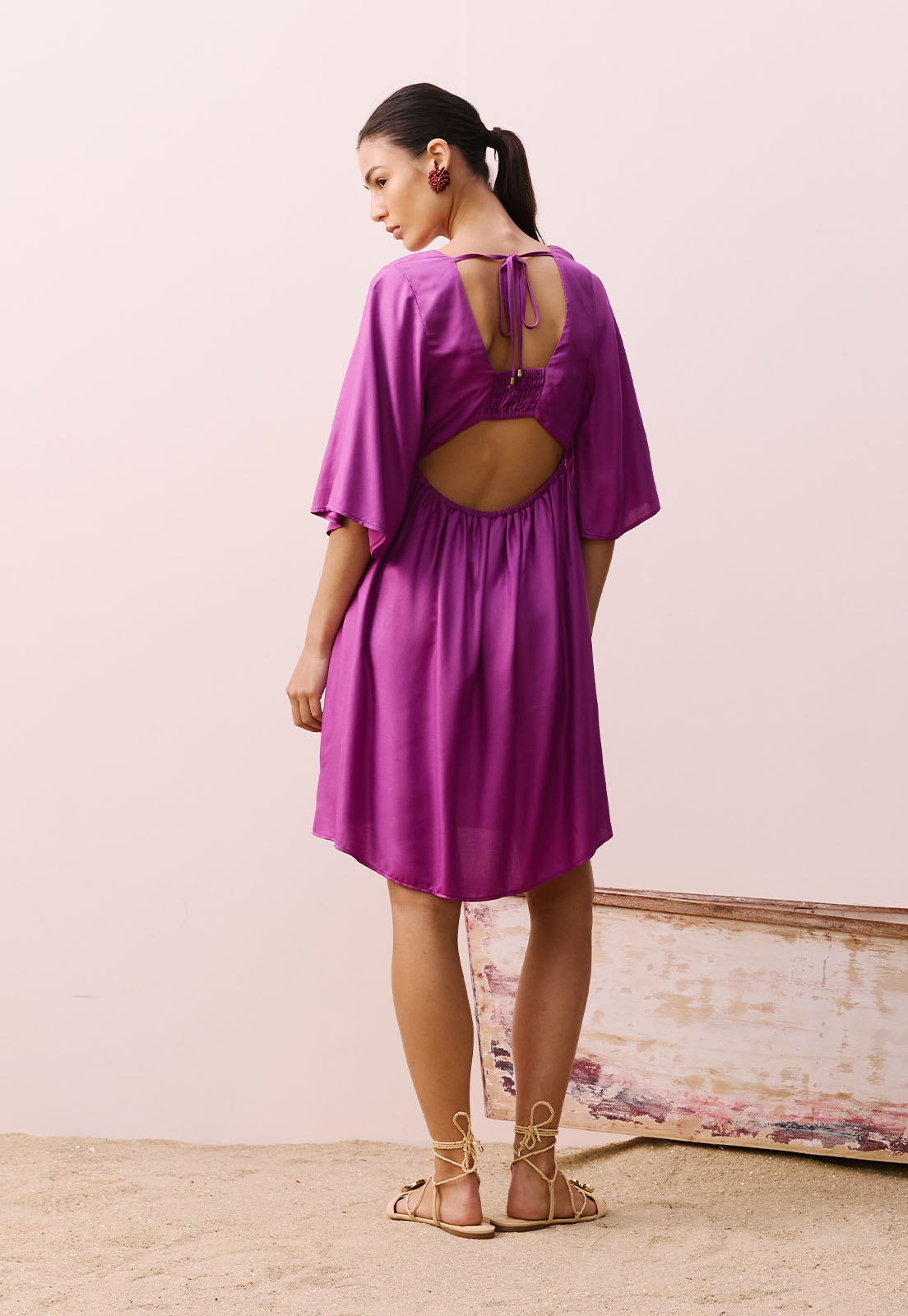 O Vestido Curto Abertura Costas CaCay é a escolha perfeita para quem busca leveza, estilo e personalidade em uma única peça. Confeccionado em 100% viscose, seu toque é suave e o caimento fluido valoriza os movimentos com naturalidade. O decote em V profundo na frente realça o colo com elegância, enquanto a abertura oval nas costas finalizada por um laço delicado no pescoço adiciona um charme ousado e sofisticado. As mangas amplas até o cotovelo garantem conforto e liberdade, tornando-o ideal para dias quentes ou eventos descontraídos com um toque de requinte.