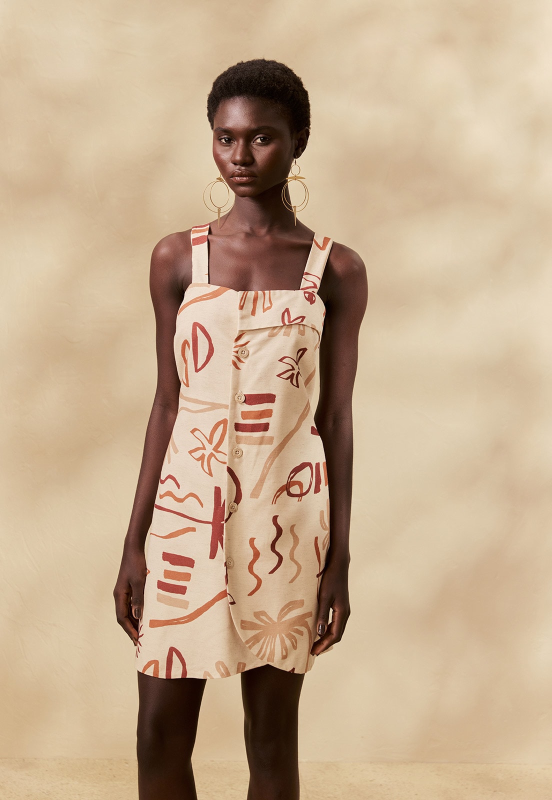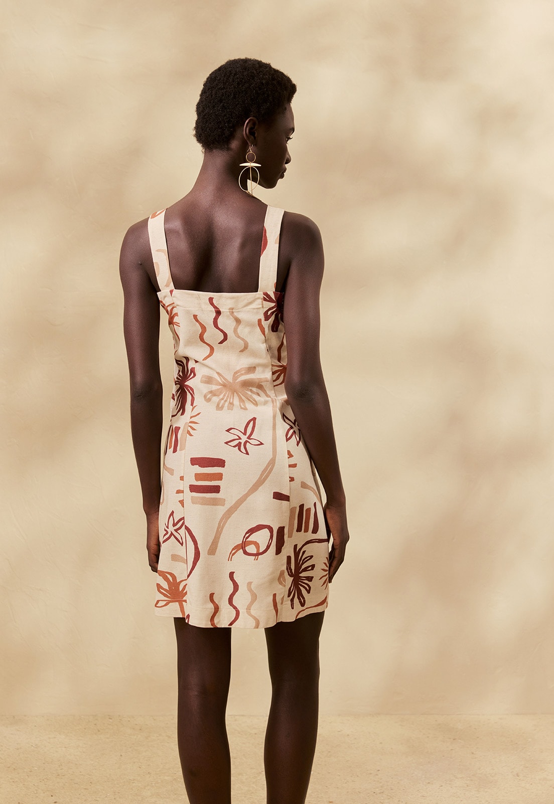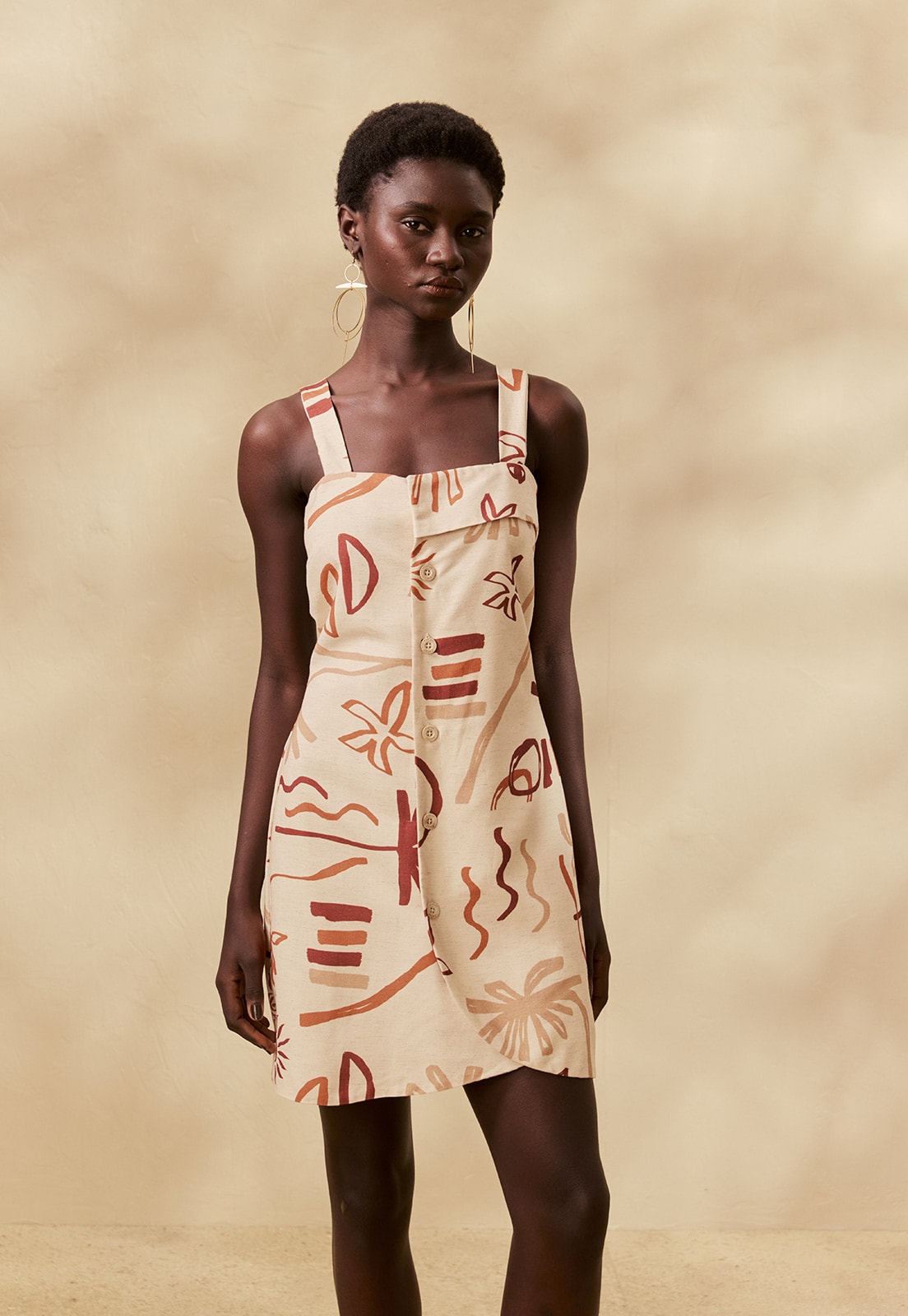 Confeccionado em tecido misto de algodão, viscose, modal e linho, o vestido tem toque macio, sem elasticidade, garantindo conforto prolongado e respirabilidade ao longo do dia. Ideal para ocasiões casuais, trabalho ou encontros diurnos, sua estampa artística adiciona personalidade atemporal. Combine com sandálias delicadas, acessórios minimalistas ou uma bolsa estruturada para criar produções versáteis e cheias de estilo.