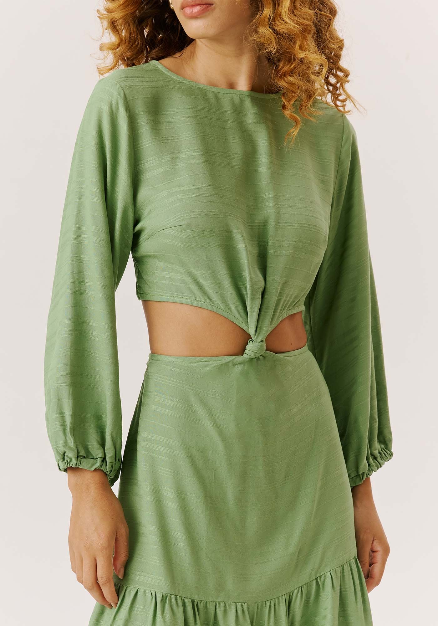 O vestido curto confeccionado emtecido 100% viscose é um modelo super charmoso. A peça com manga longa possuinó na parte da frente e babado na barra. O fechamento em botões na parte detrás delicado e bonito e dá um toque especial na peça.